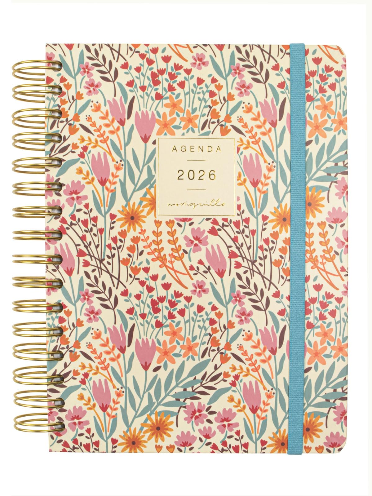 Finocam – Agenda 2026 1 Día Página | Enero – Diciembre (12 meses) | Agenda Anual 2026 con goma elástica | Espiral Doble Tapa Dura Moniquilla – Espiga – Español