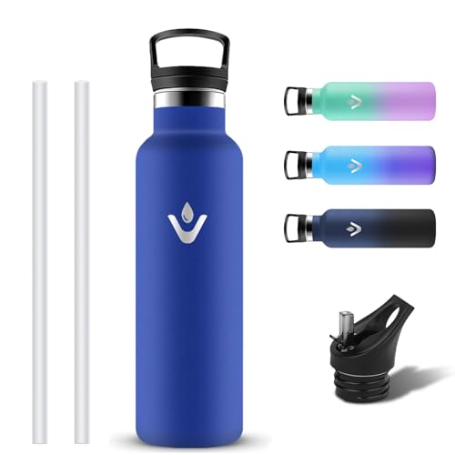 Grsta Botella Agua Acero Inoxidable 750ml, Cantimplora Termica con Pajita y Filtro, Reutilizable Termo a Prueba de Fugas, Botella Termica con 2 Tapones sin BPA para Deporte, Hogar, Gimnasio