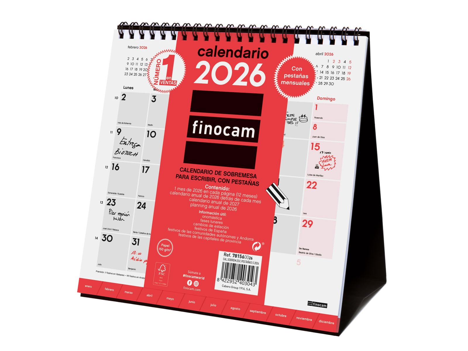 Finocam – Calendario de sobremesa para escribir 2026 con Pestañas Mes Vista Enero – Diciembre (12 meses) | Calendario 2026 para anotar | Planificador mensual Neutro – Español