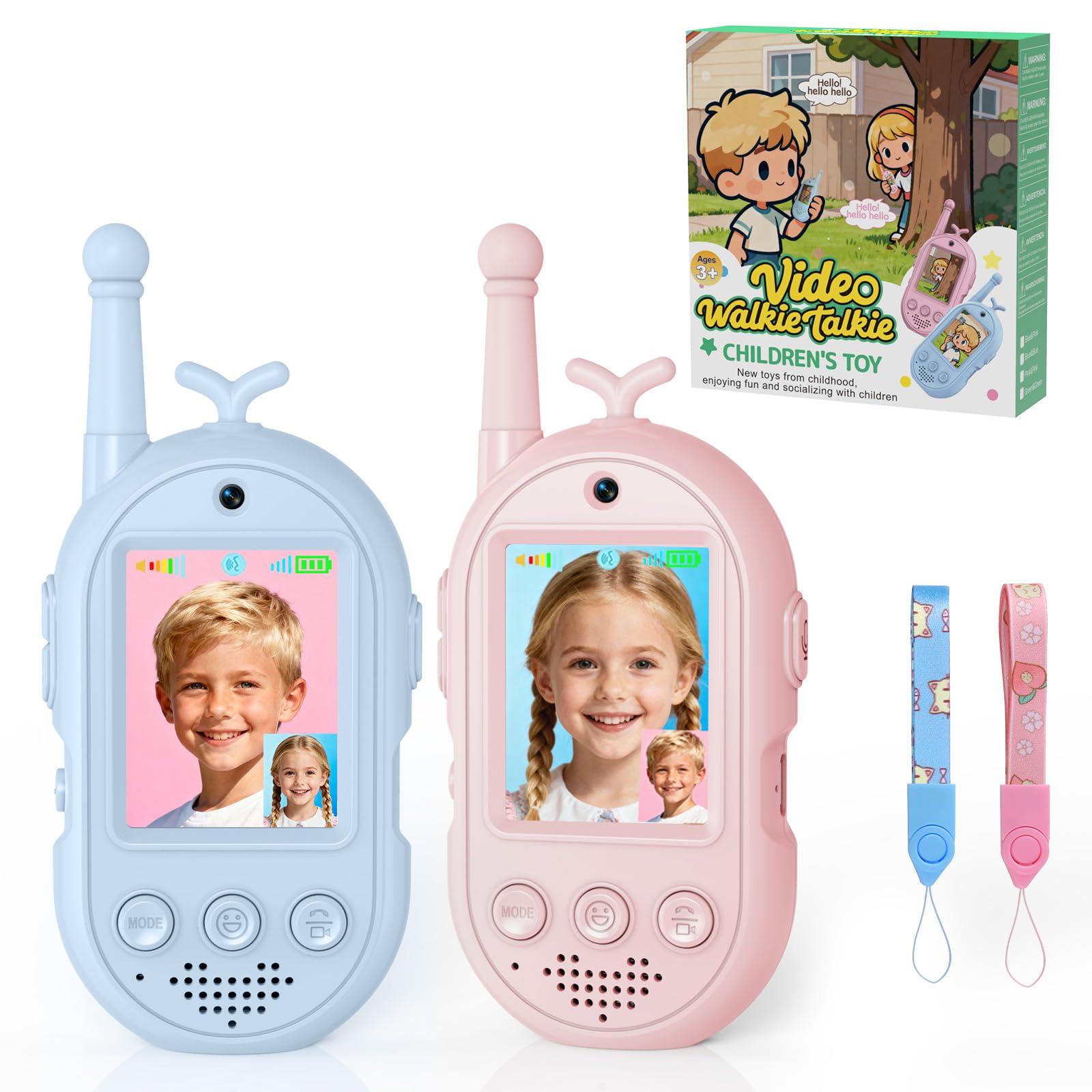 Vídeo Walkie Talkies para Niños, Walkie Talkies Recargables con Videollamada, Largo Alcance 400m, Juguetes Cumpleaños para Niños y Niñas de 3 a 12 Años(Set de 2)