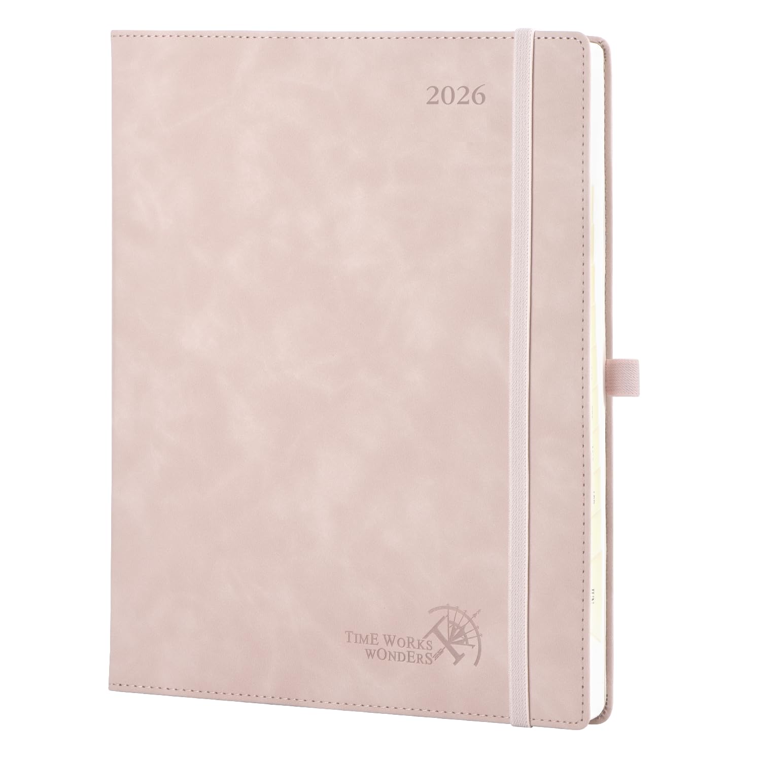 POPRUN Agenda 2026 Semana Vista 26,5 x 21,5 cm, Tapa Blanda, Marcapágina de Cinta, Una Página por Semanal con Una Página de Notas, 100 GSM Papel EU, Rosa Pálido