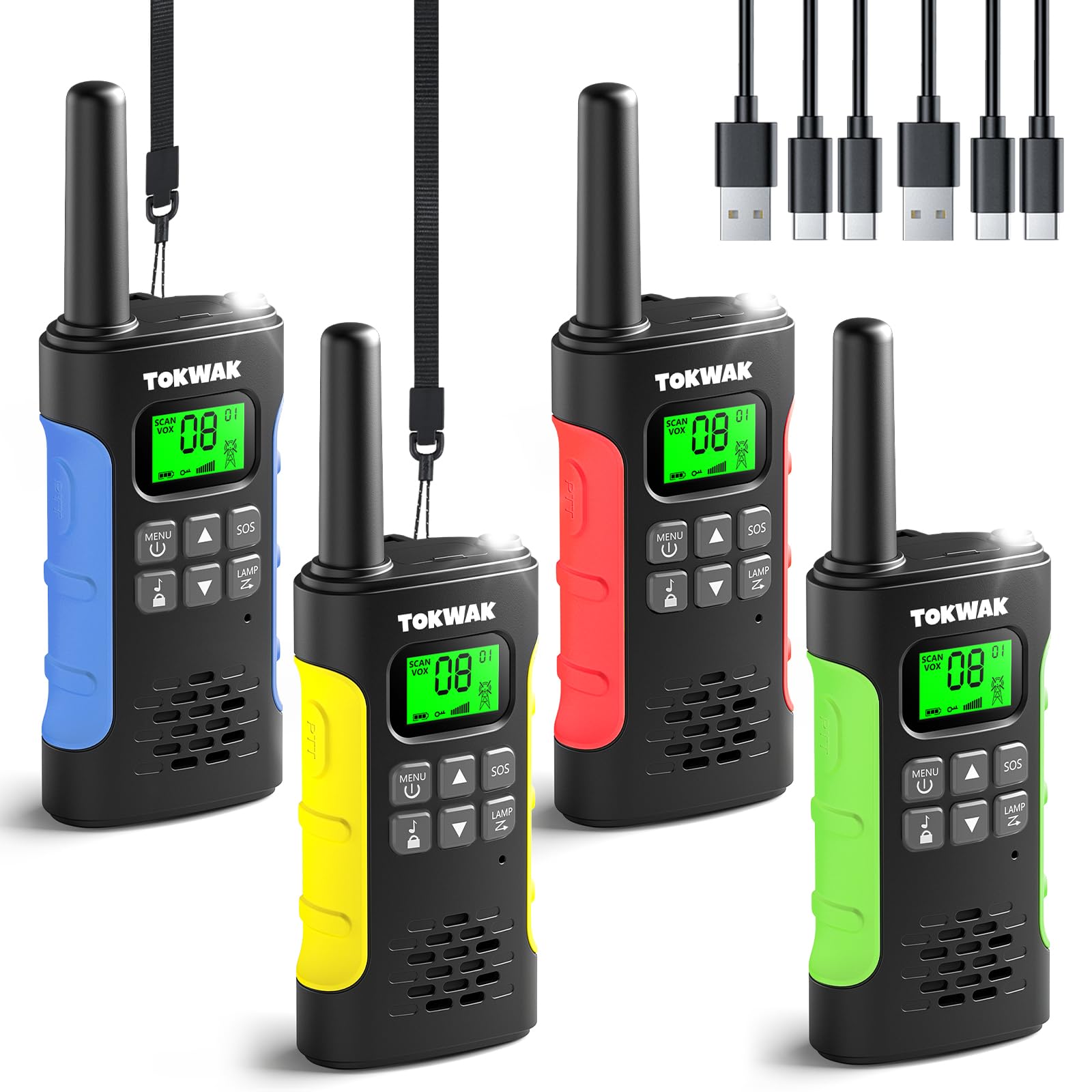 TOKWAK Walkie Talkies Recargable con Batería, 4pcs Walkie Talkie para Niños Adultos, VOX y Linterna, Walkie-Talkie Largo Alcance 3KM, 16 Canales Walky Talky para Exteriores Camping Senderismo
