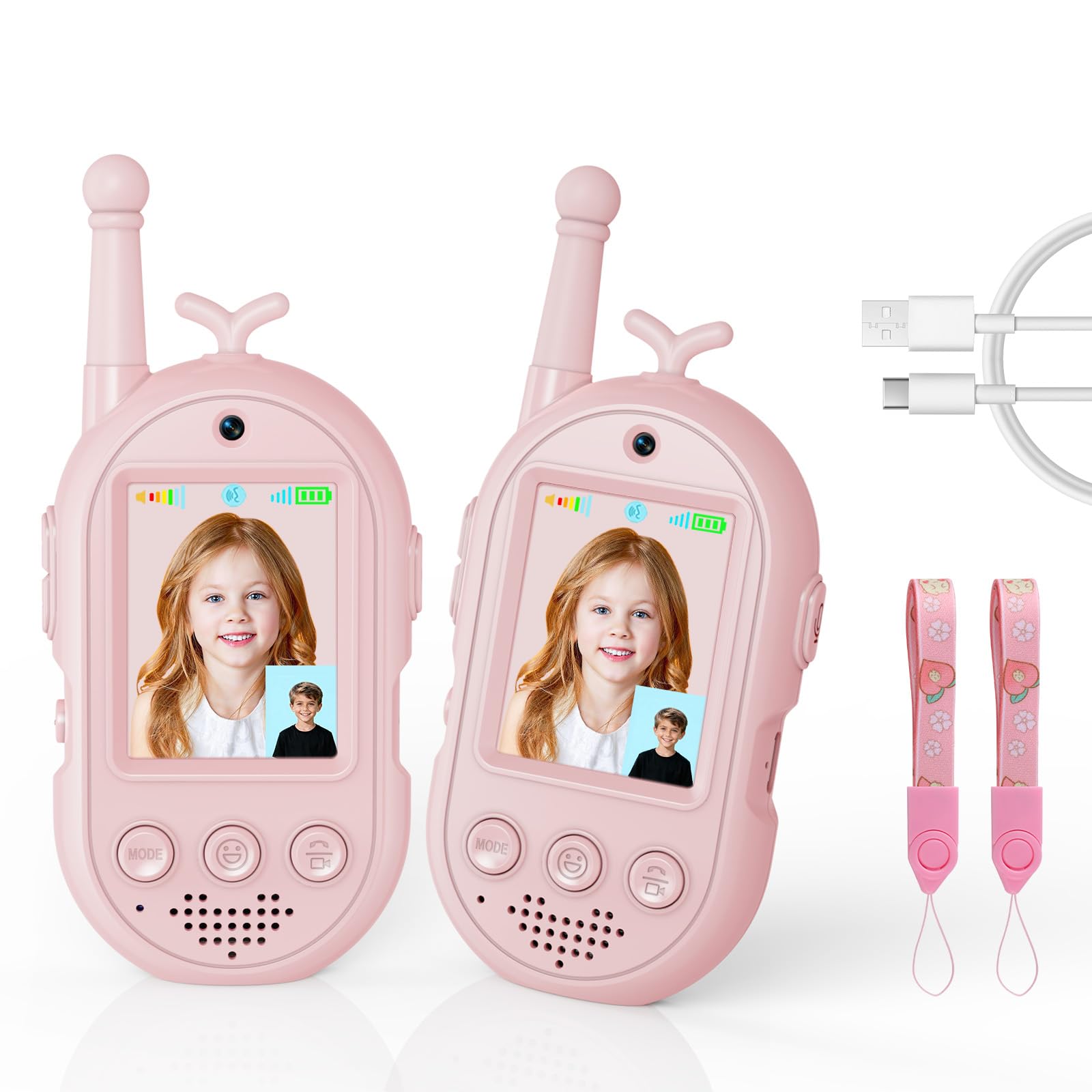 Vídeo Walkie Talkies para Niños, Walkie Talkies Recargables con Videollamada, Largo Alcance 400m, Juguetes Cumpleaños para Niños y Niñas de 3 a 12 Años(Set de 2)