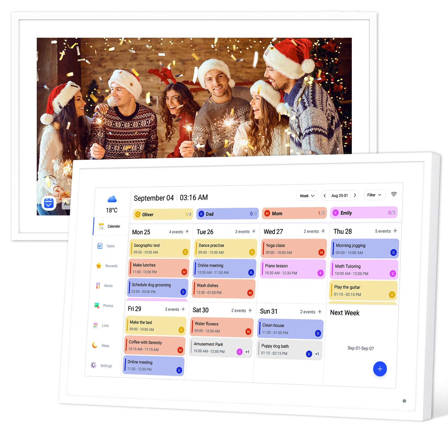 Hesmor Calendario Familiar Digital de 15,6 Pulgadas con Pantalla táctil, planificador de tareas domésticas para 2025-2026, Organizador de Pared Interactivo con Marco de Fotos