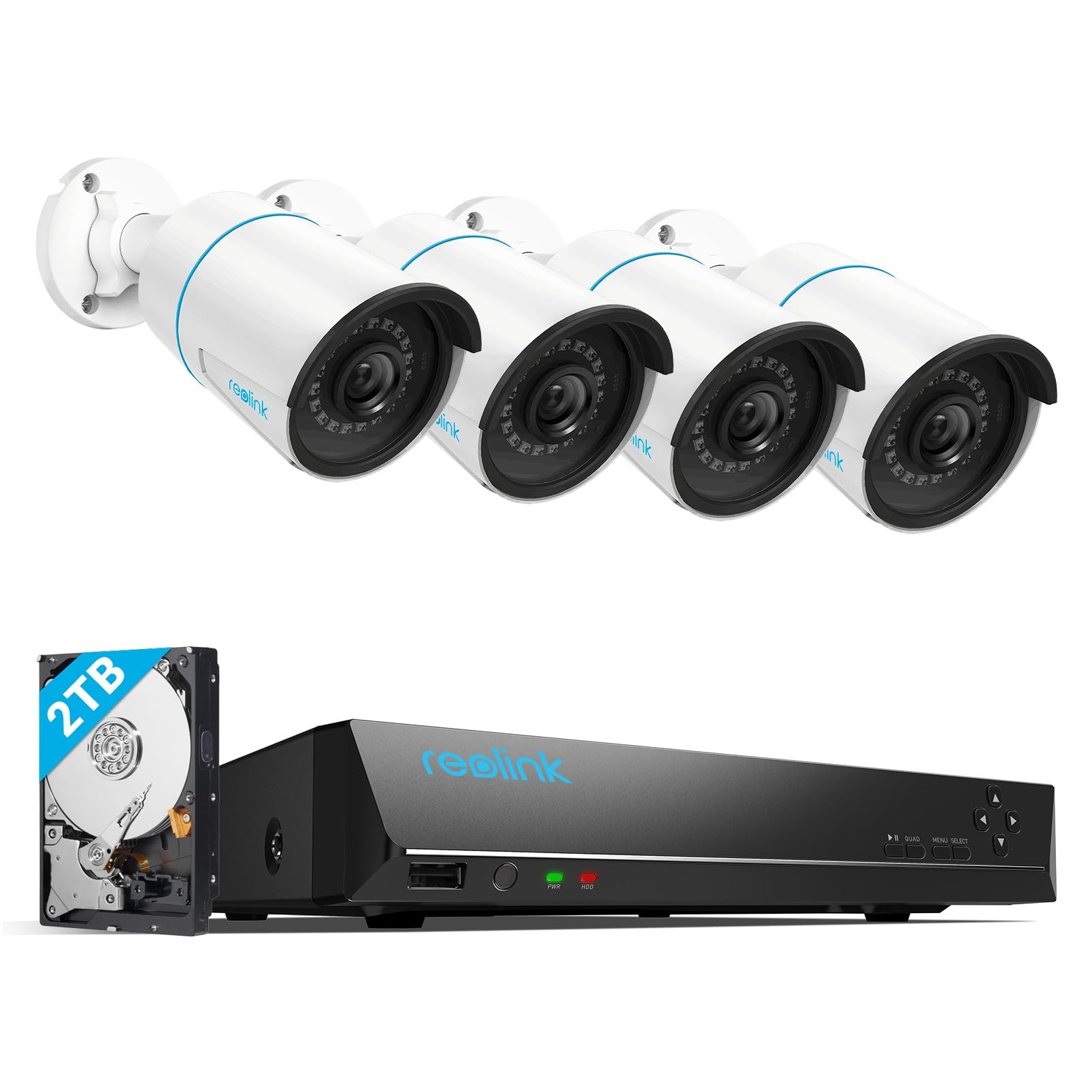 Reolink Kit Cámaras de Seguridad 8CH 5MP H.265, 4 PoE IP Cámaras Exterior Impermeables IP67, Detección de Personas/vehículos, 30M Visión Nocturna, 2TB HDD NVR para Grabación Continua, RLK8-410B4-5MP