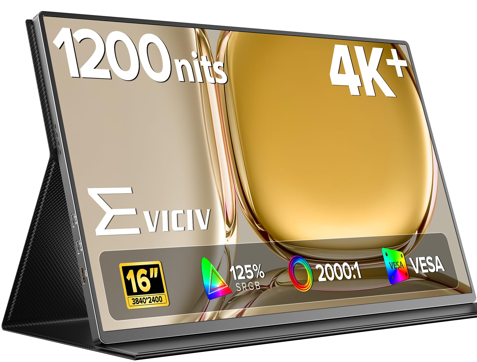 EVICIV Monitor Portátil 16 Pulgadas 4K 1200 Nits 3840×2400 2000:1 125% sRGB USB-C HDMI, Compatible VESA con Funda, Alta Luminosidad Portable Monitor para Exteriores para Portátil/Teléfono/Consola