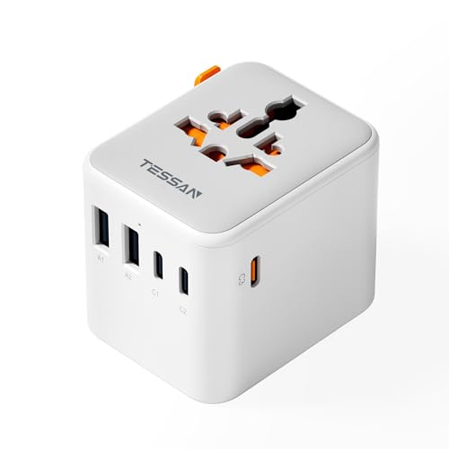 TESSAN Adaptador Enchufe Universal Viaje con 5 USB, Cargador USB C Carga Rapida 65W GAN, Adaptador Universal Enchufe Viaje para Estados Unidos Tailandia Japón Reino Unido Brasil Australia España
