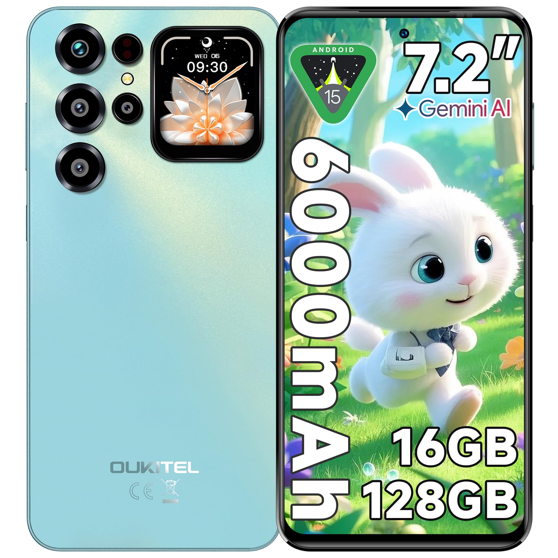 OUKITEL C68 Plus Telefonos Moviles Libres – 7,2” HD+ 120Hz 1.8″ Pantalla Trasera 16GB RAM+128GB ROM/1TB Telefono Movil, Batería 6000mAh Cámara 64MP, Android 15 Smartphone, 4G Dual SIM/Face ID/GPS-Azul