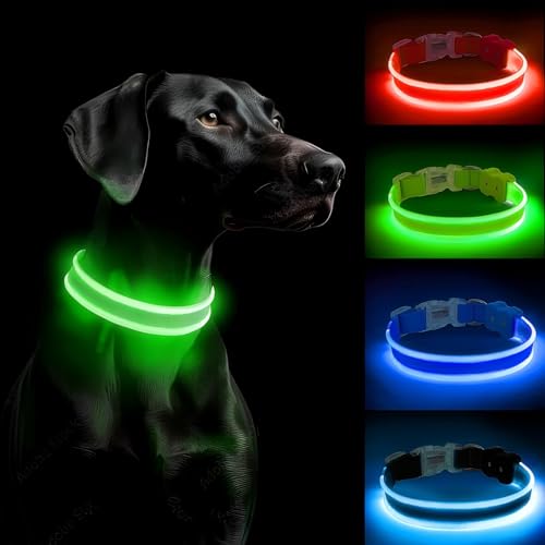 PcEoTllar Collar Luminoso Perro, Collar Luz Recargable y Impermeable, Collares LED Perros con 3 Modos de Iluminación para Perros Pequeños Medianos Grandes, Verde(TC5300)-M