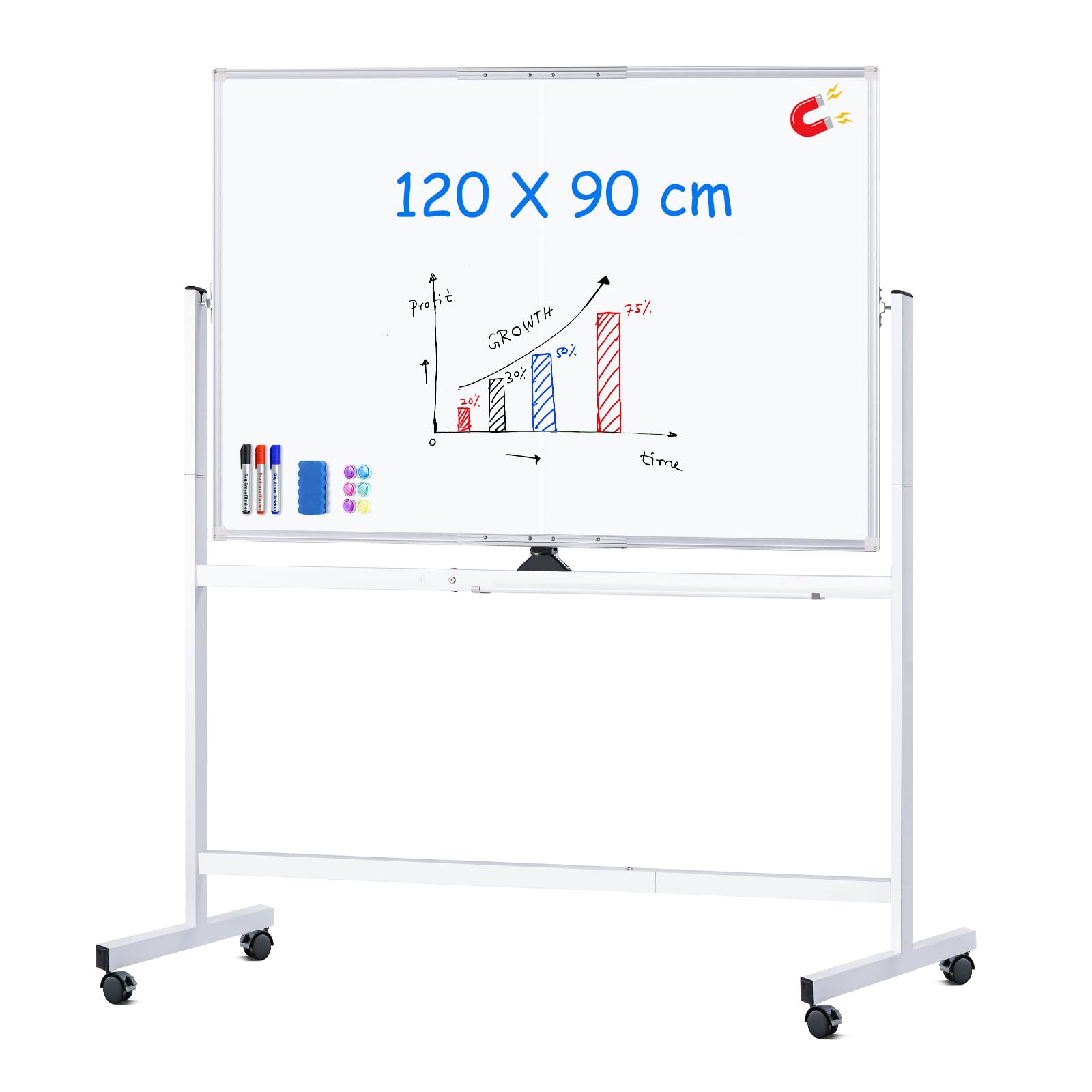 maxtek Pizarra Blanca Móvil 120 x 90 cm, Pizarra Magnética Grande Marco de Aluminio de Doble Cara, Whiteboard con Ruedas con Marcadores, Imanes, Borrador de Pizarra para escuela en casa, oficina