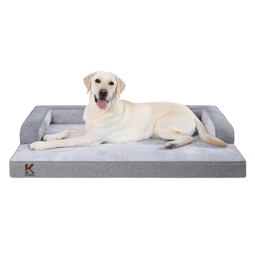 KSIIA Cama ortopédica extragrande para perros XL impermeable con refuerzo en forma de U, funda extraíble lavable y parte inferior antideslizante, gris, 104 x 68 x 17 cm