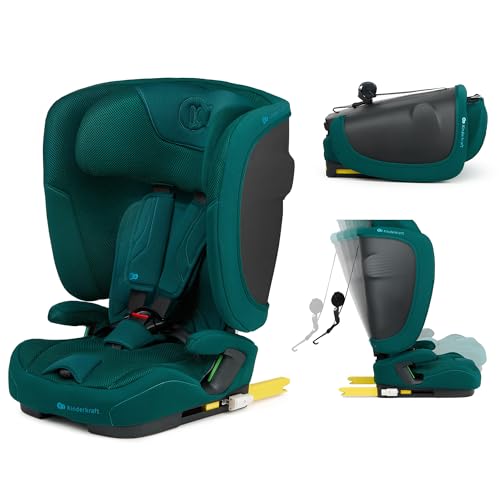 Kinderkraft FIX2GO Silla infantil i-size, 76-150 cm, base Isofix, Top Tether, sensores electrónicos, hasta aprox. 12 años, sistemas de seguridad, tapizados premium, reclinables, Verde