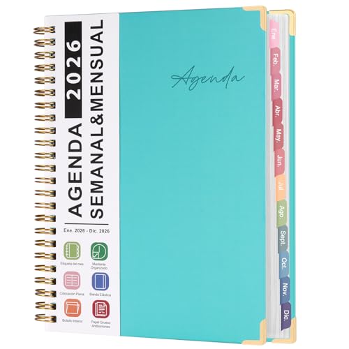 Agenda 2026(Ene.-Dic.), Planificador Español Semanal y Mensual Con Pestañas de Colores | Espiral | Para Oficina Universidad Hogar Gym