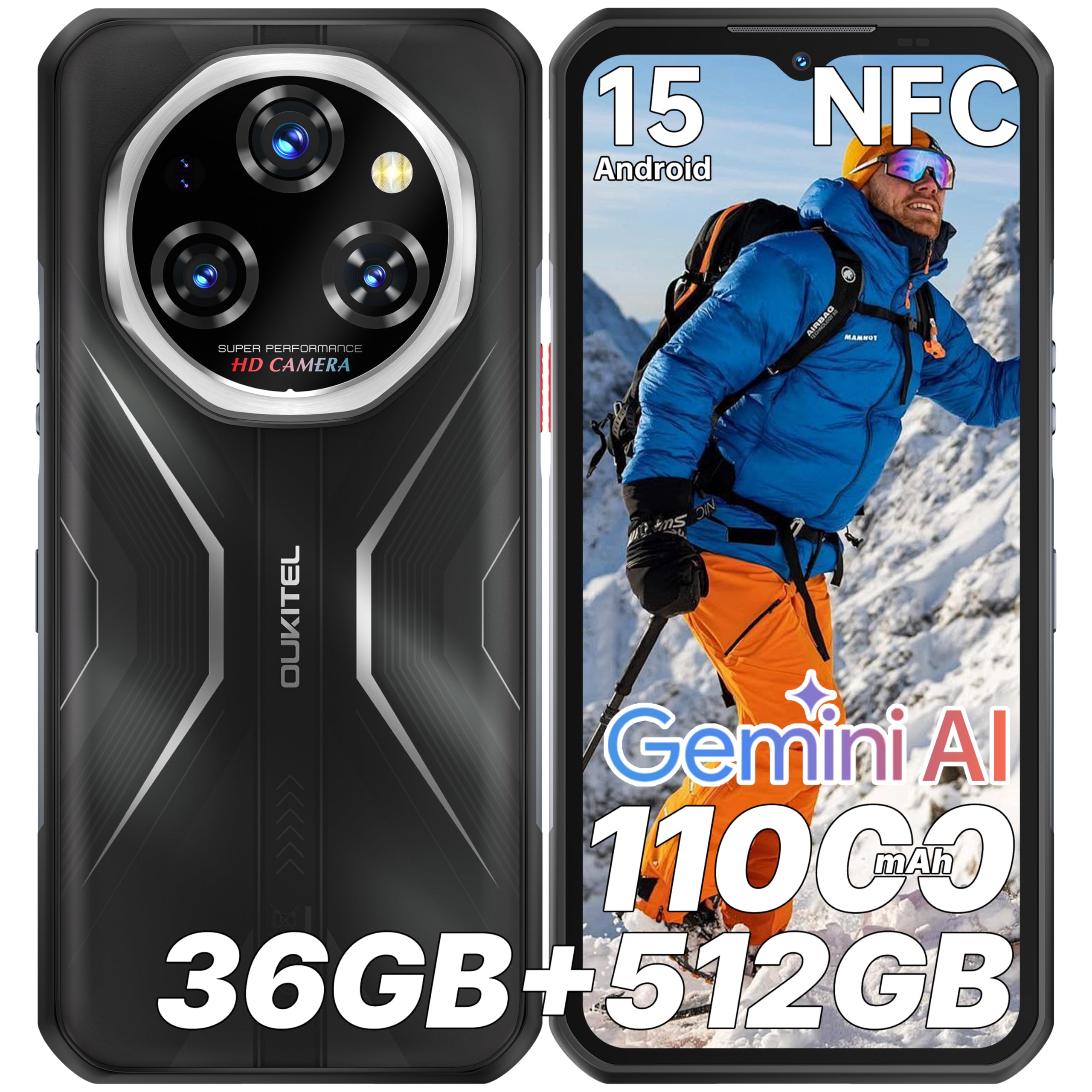 OUKITEL Movil Irrompible WP55 S 36GB RAM+512GB ROM/2TB TF Móvil Rugerizado MTK G100 Gemini AI Android 15 Rugged Smartphone 11000mAh/33W 6.6 FHD 120Hz 64MP/Dual SIM/NFC/Lector de Huellas/GPS/5G WiFi