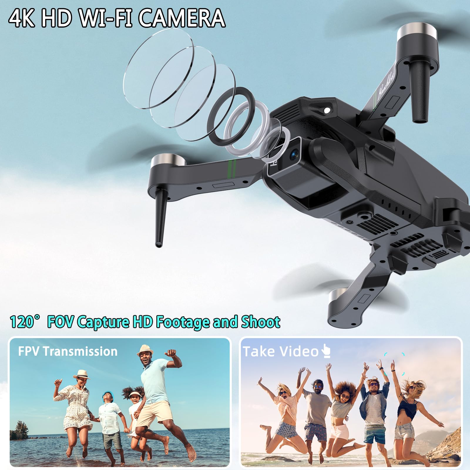 Drones con Camara 1080P Adultos, Dron para Adultos/Niños 1080P Quadcopter RC Drones Plegable, Vídeo en directo con drones FPV, Aterriza con Un Clic, 3D Flip. Regalos para Niñas/Niños, 3 Baterías