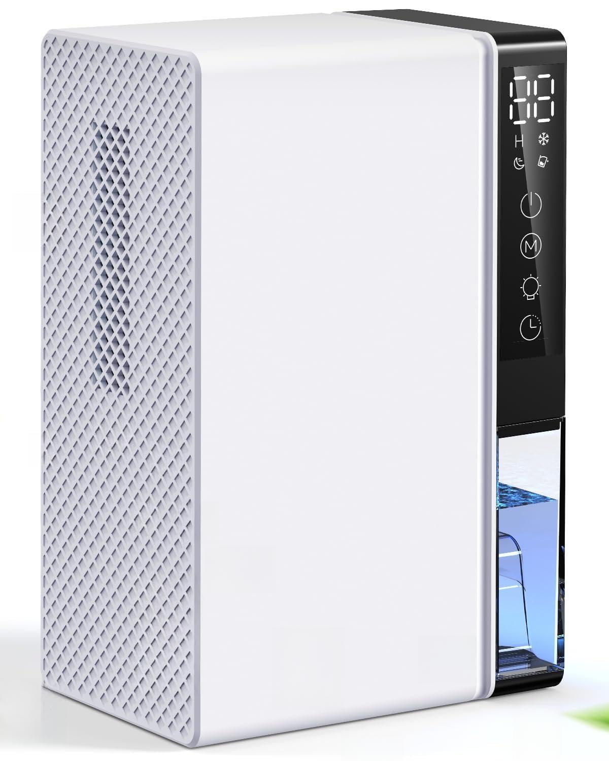 Deshumidificador eléctrico 2.8L, Deshumidificador de habitaciones silencioso con apagado automático, temporizador, modo sleep, luz nocturna de 7 colores, portátil, baño(Blanco nieve)