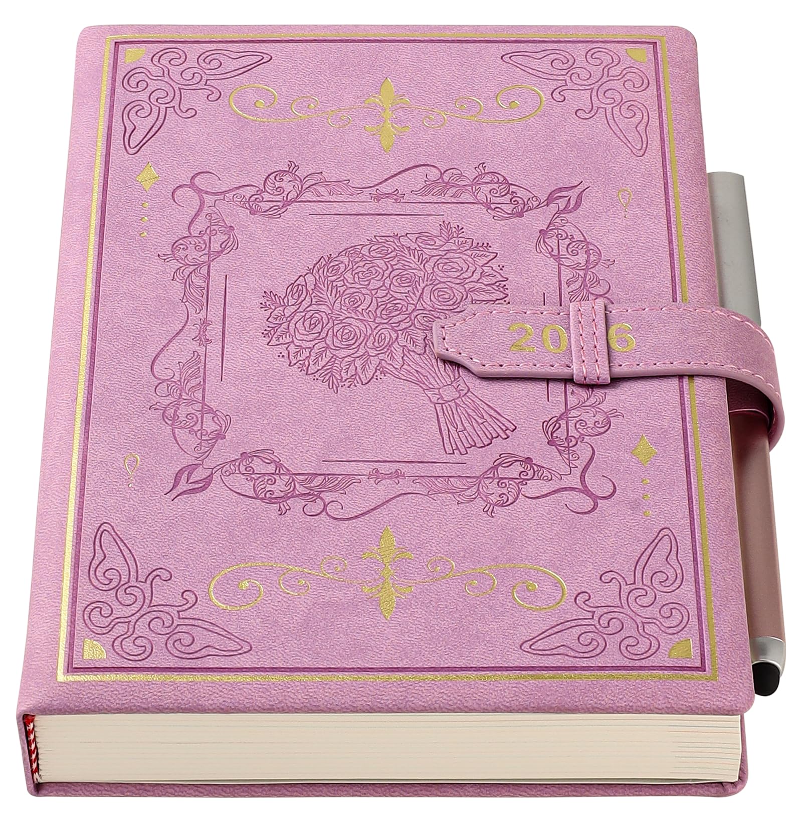 Holderzyi Agenda académica 2026, tamaño A5, 1 día por página, agenda diaria y mensual de 12 meses de enero de 2026 a diciembre de 2026, tapa elegante, bolígrafo, bolsillo interior (morado)