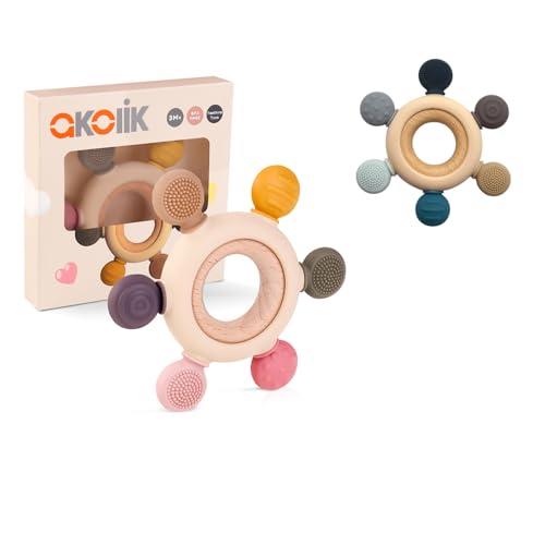 Mordedor Bebe, Juguete la Dentición del Bebé Mordedor de Silicona, Remo, Juguete Agarrar, Accesorio de Enfermería la Dentición sin BPA para Bebés de más de 3 Meses (Timón A+B)
