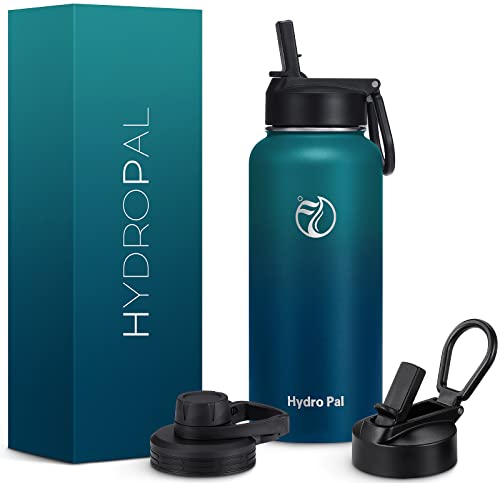 Hydropal Botella Agua Acero Inoxidable – Botella Termica de 500ml 750 ml 1 L 1,2 L 1,9L con Pajita y 2 Tapas – Termo de Doble Pared Sin BPA – Boca Ancha a Prueba de Fugas – Para Lavavajillas