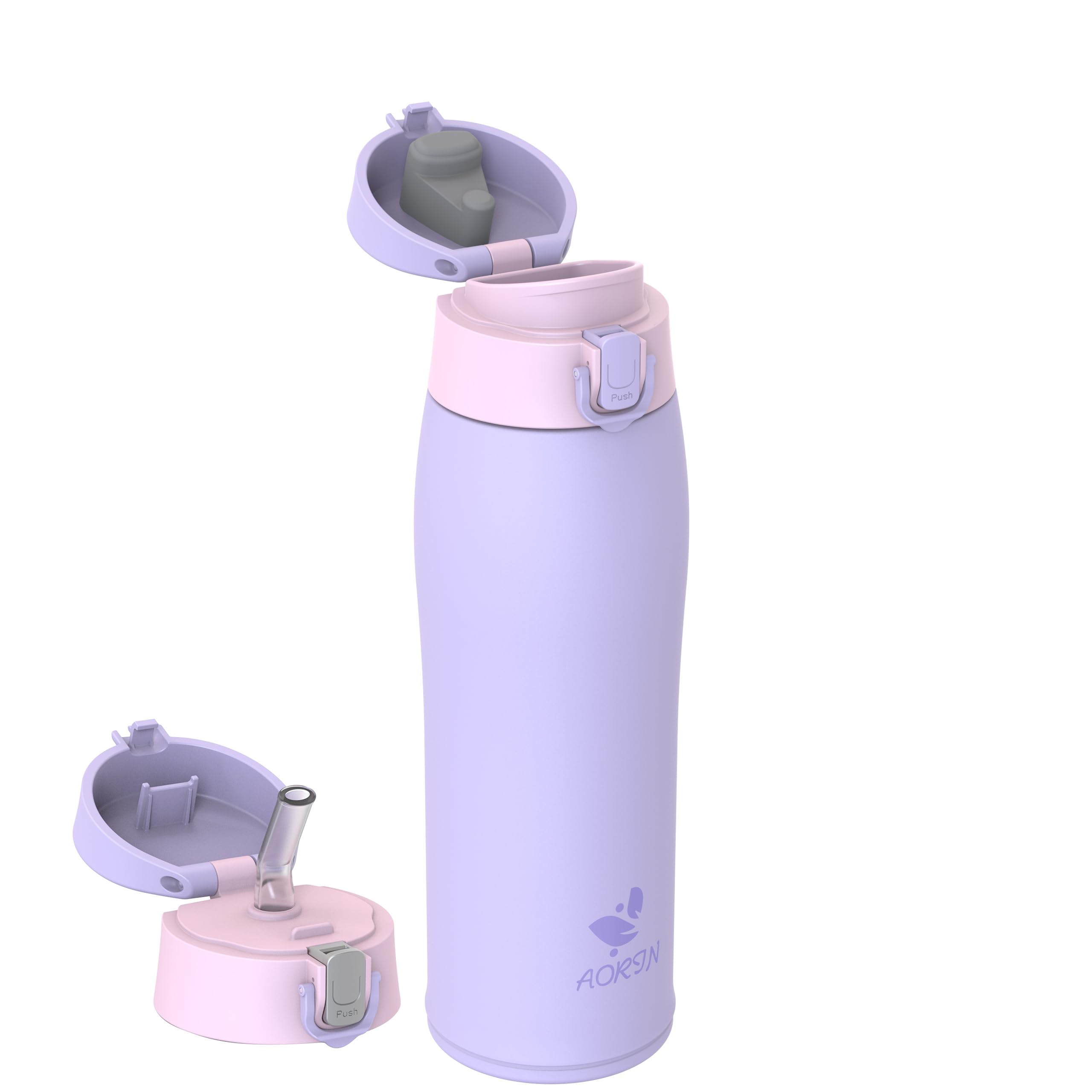 AORIN Botella Agua Acero Inoxidable 18/8 con 2 Tapas, 750ml Botella Agua Niños, Botella Térmica Anti-Fugas, Botella Gimnasio, Termo sin BPA para Deportes, Exterior, Viajes y Escuela
