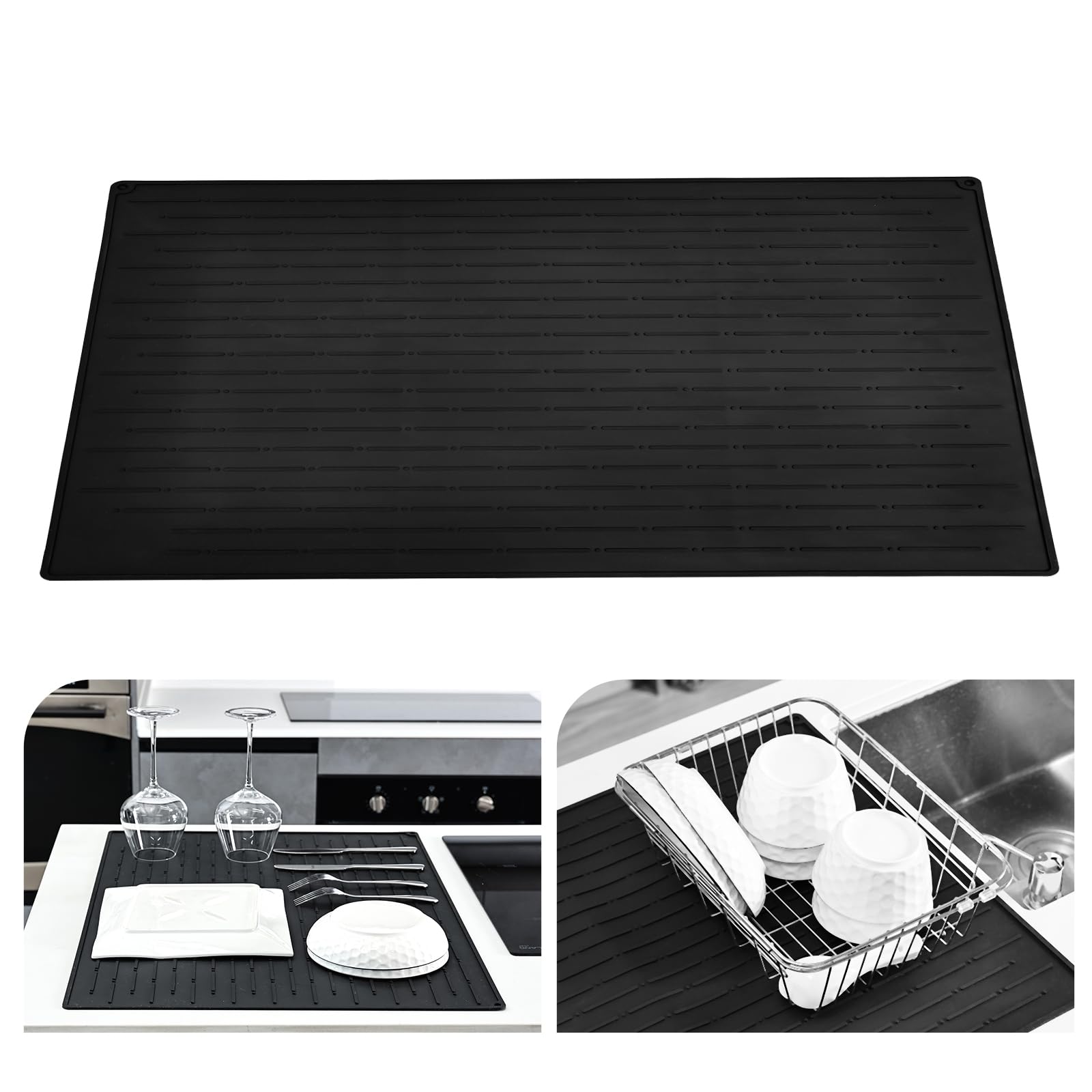 KitchenRaku Alfombrilla Escurreplatos de Silicona (Negro, 51.3×71.3cm)