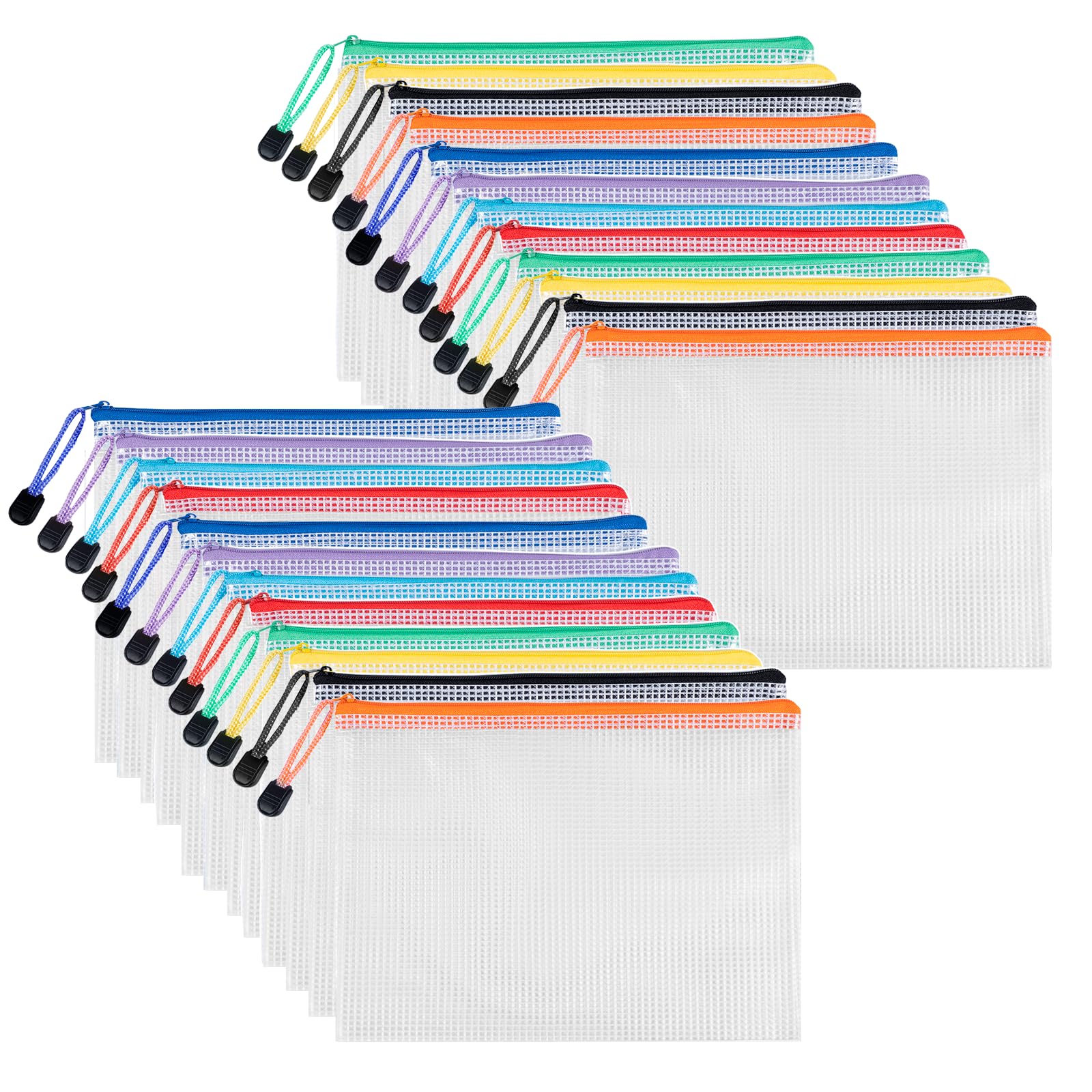 Bolsas de Documentos A5 con Cremallera 24 Piezas, Carehabi Carpeta Fundas Plástico Malla Transparente, Archivador A5 para Material Escolar Oficina Viajes y Recibos Certificados