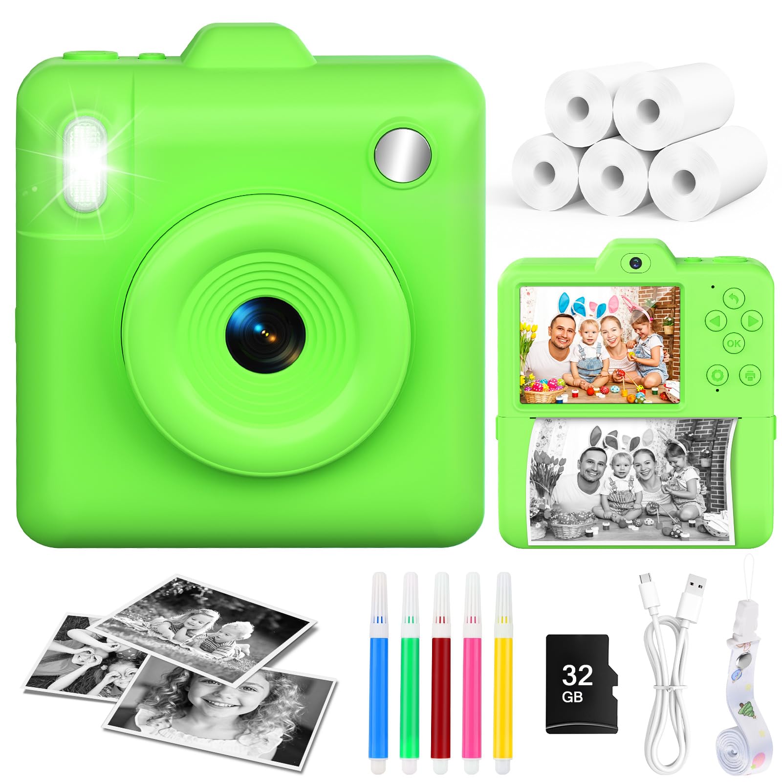 UIONVO Camara Fotos Infantil Instantanea,1080P Camara Fotos Infantil con Tarjeta de 32GB y Papel de Impresión Cámara Instantánea Cumpleaños para Niños y Niñas de 3 a 12 Años,Verde