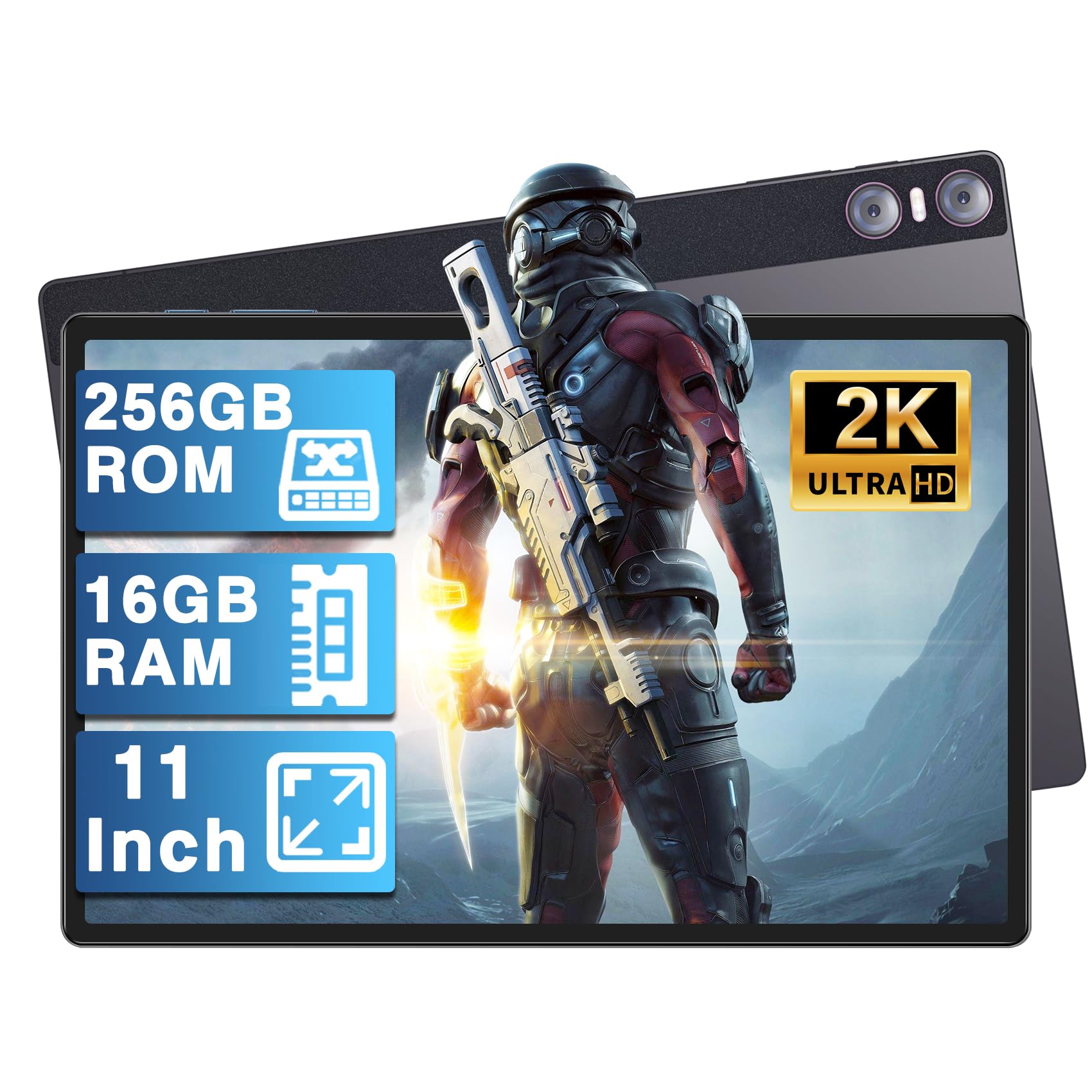 SKYEGG Tablet 11 Pulgadas Android, 16GB RAM 256GB ROM Expandible 1TB, Pantalla 2K IPS, 4 Altavoces, 3 Cámaras, GPS, Carga Rápida 18W, 8600mAh, WiFi 5G, Octa-Core, con Funda – Gris