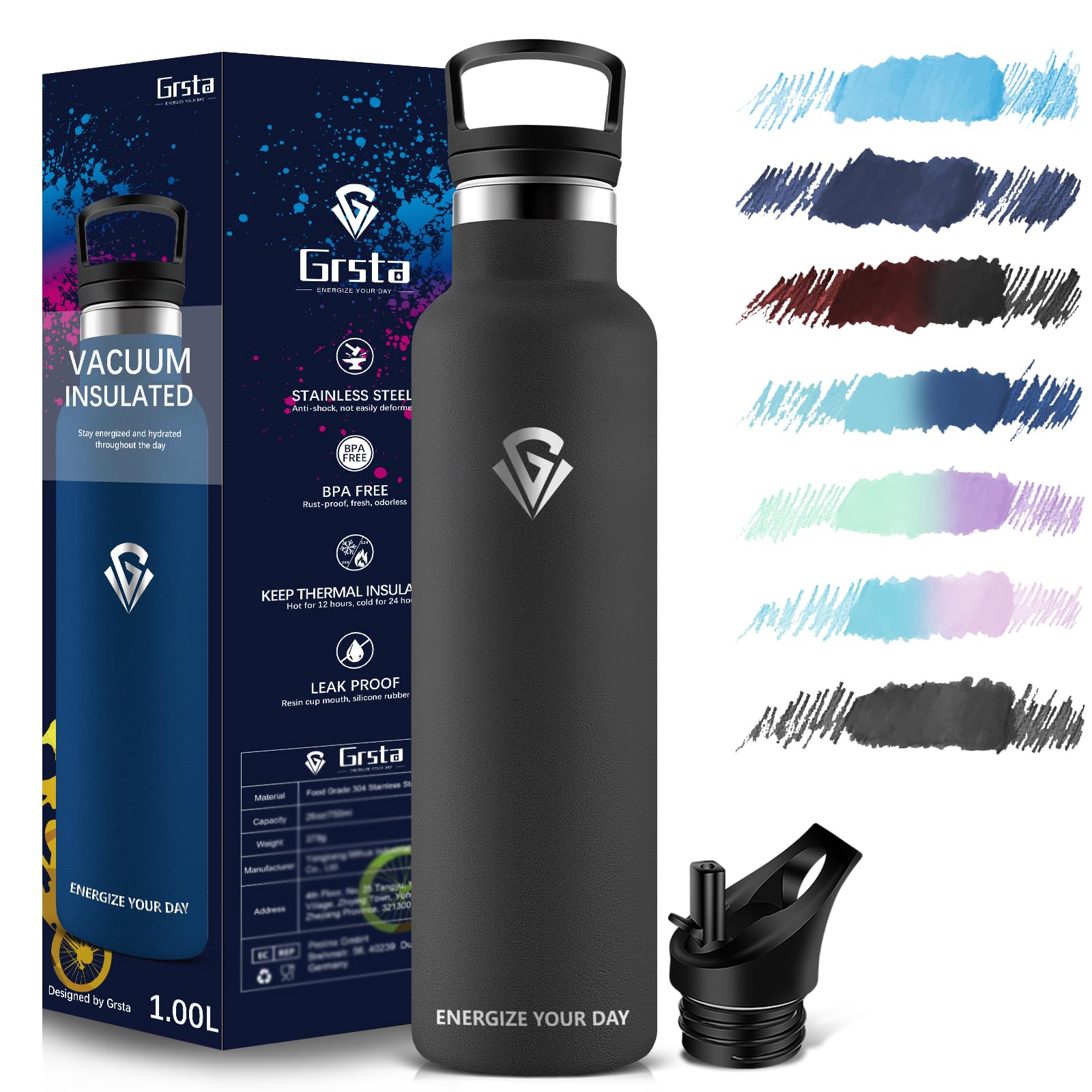 Grsta Botella Agua Acero Inoxidable, Botella Termica 1000ml, sin BPA, Botella agua Gimnasio, Cantimplora Termica para Adultos, Deporte, Oficina, Escuela, Gym