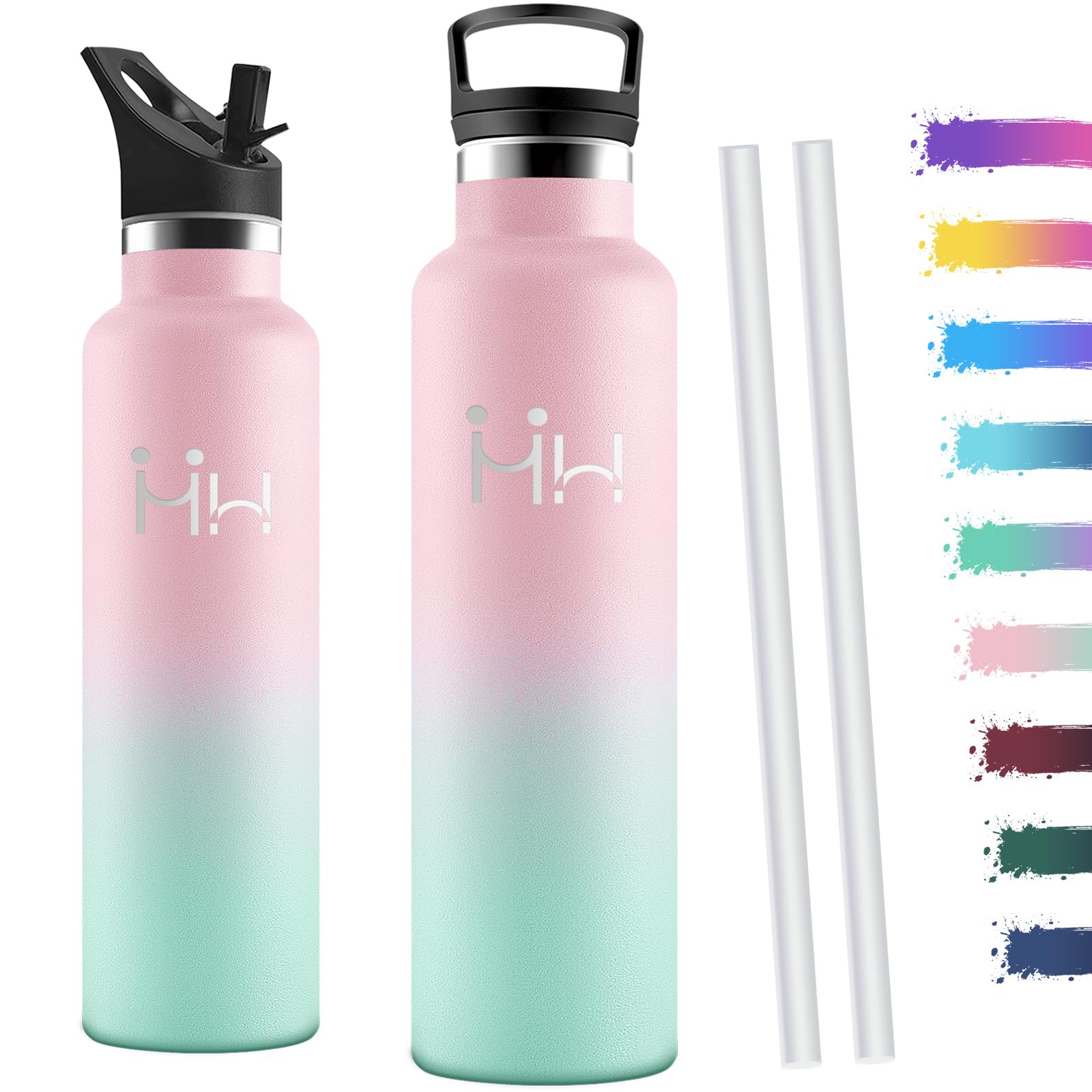 Motswedi Botella agua Termica, 1000ml Doble Aislamiento, Botella Termica 1 litro, Mantener 12H Caliente/24 Frío, Cantimplora, a Prueba de Fugas, Thermoflask, para Oficina, Hogar, Rosa & Verde