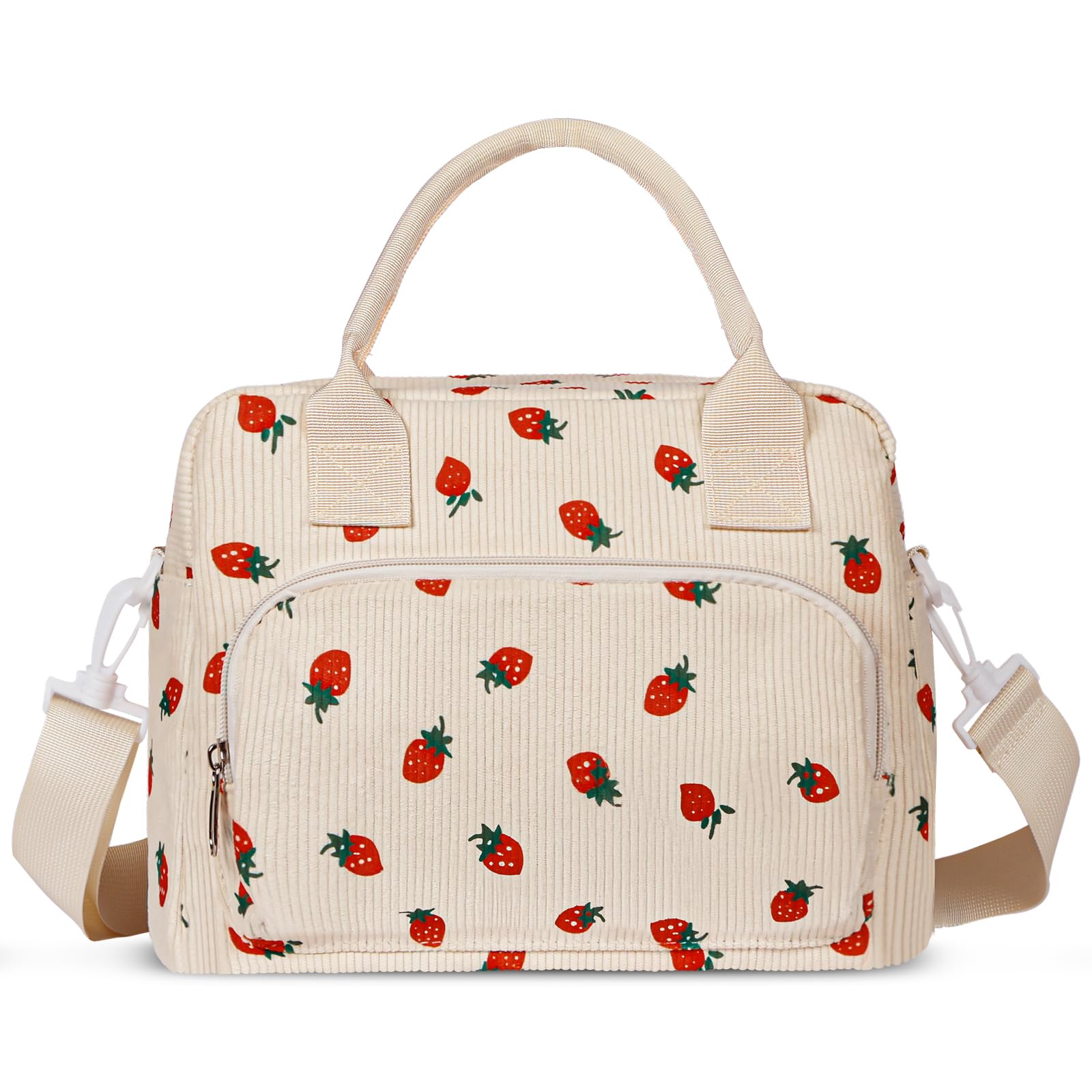 Aucuu Bolsa Térmica Porta Alimentos, Bolsa de Almuerzo Reutilizable con Aislamiento, Ionchera Aislada para Adultos, con Correa, para el Trabajo, Viajes, Picnic, Oficina-Fresa
