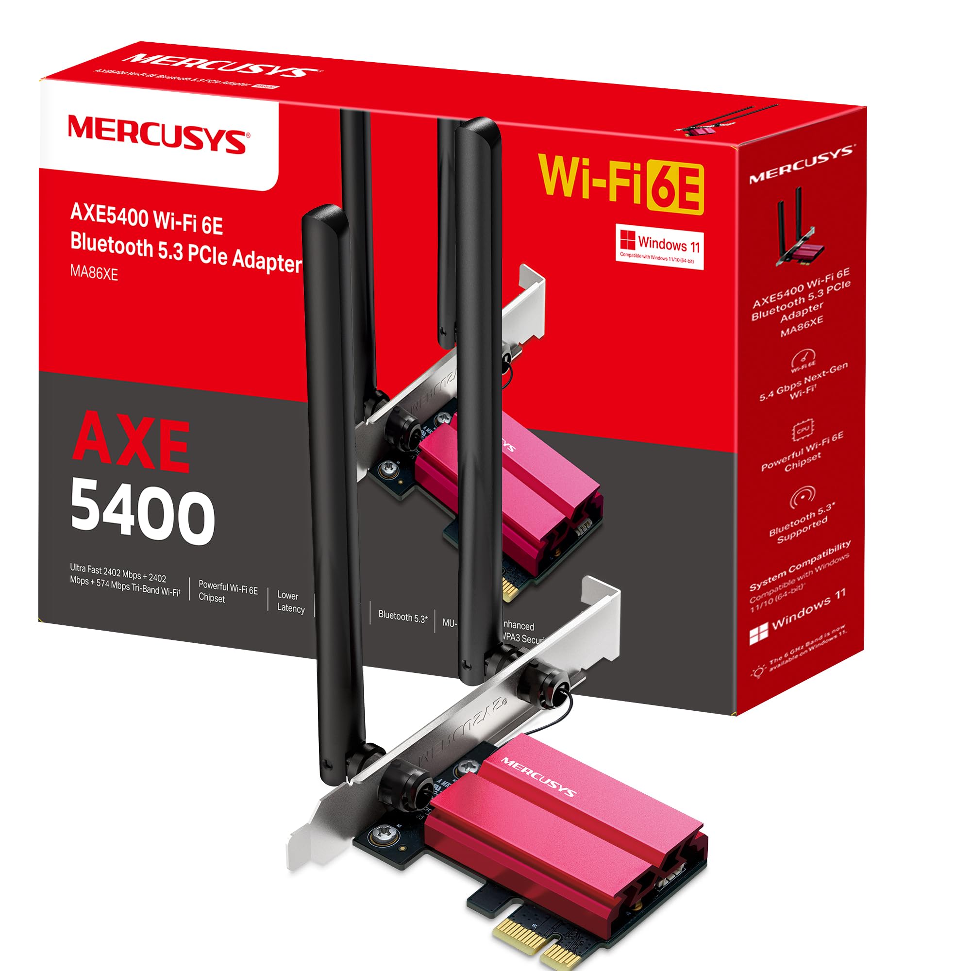 [Nuevo] MERCUSYS MA86XE- Tarjeta de Red PCLe AXE5400, Wi-Fi 6E con Bluetooth 5.2, Triple Banda, 6GHz/5GHz/2.4GHz,Compatible con Windows 11 y 10,MU-MIMO,OFDMA, estándar de cifrado WPA3