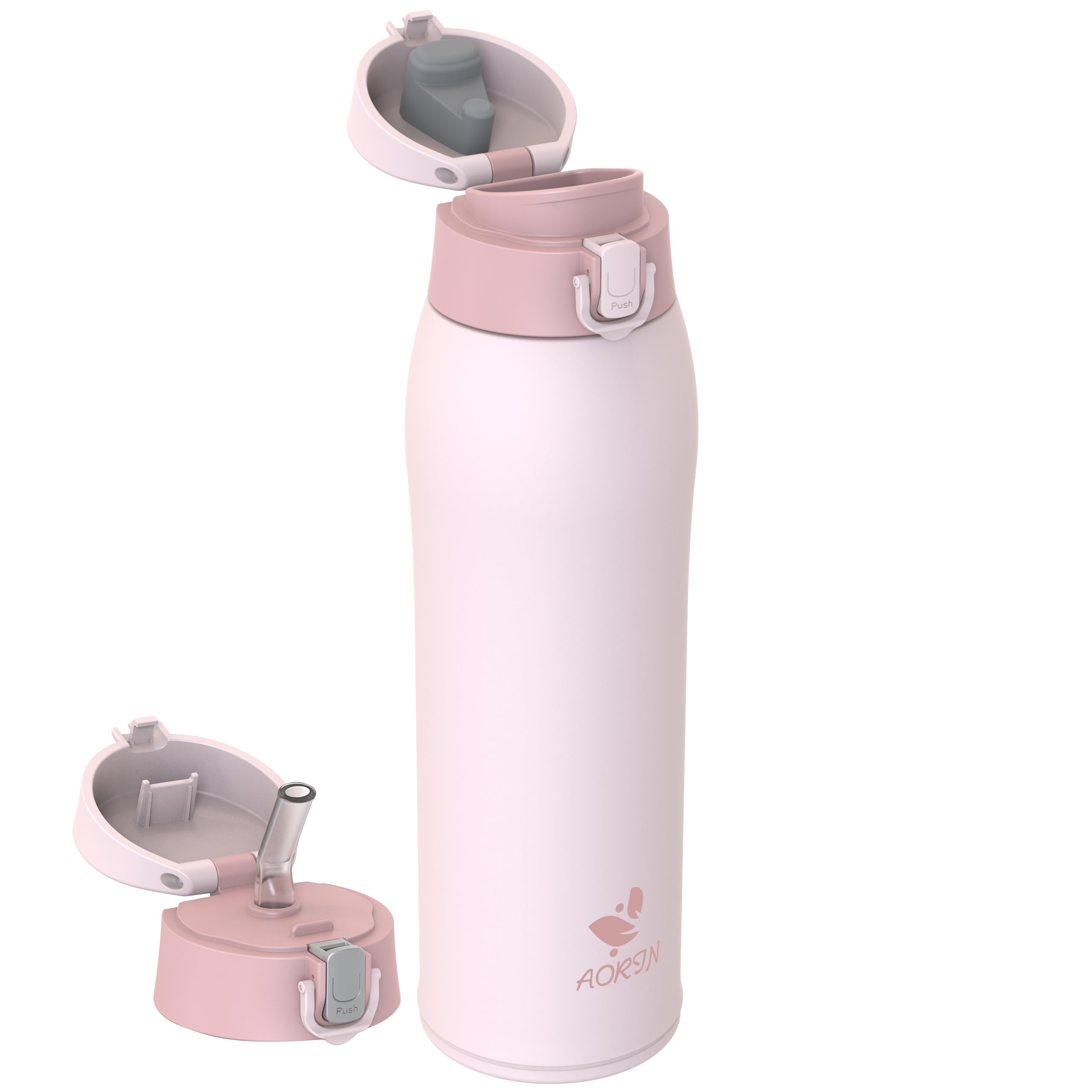 AORIN Botella Agua Acero Inoxidable 18/8 con 2 Tapas, 950ml Botella Agua Niños, Botella Térmica Anti-Fugas, Botella Gimnasio, Termo sin BPA para Deportes, Exterior, Viajes y Escuela