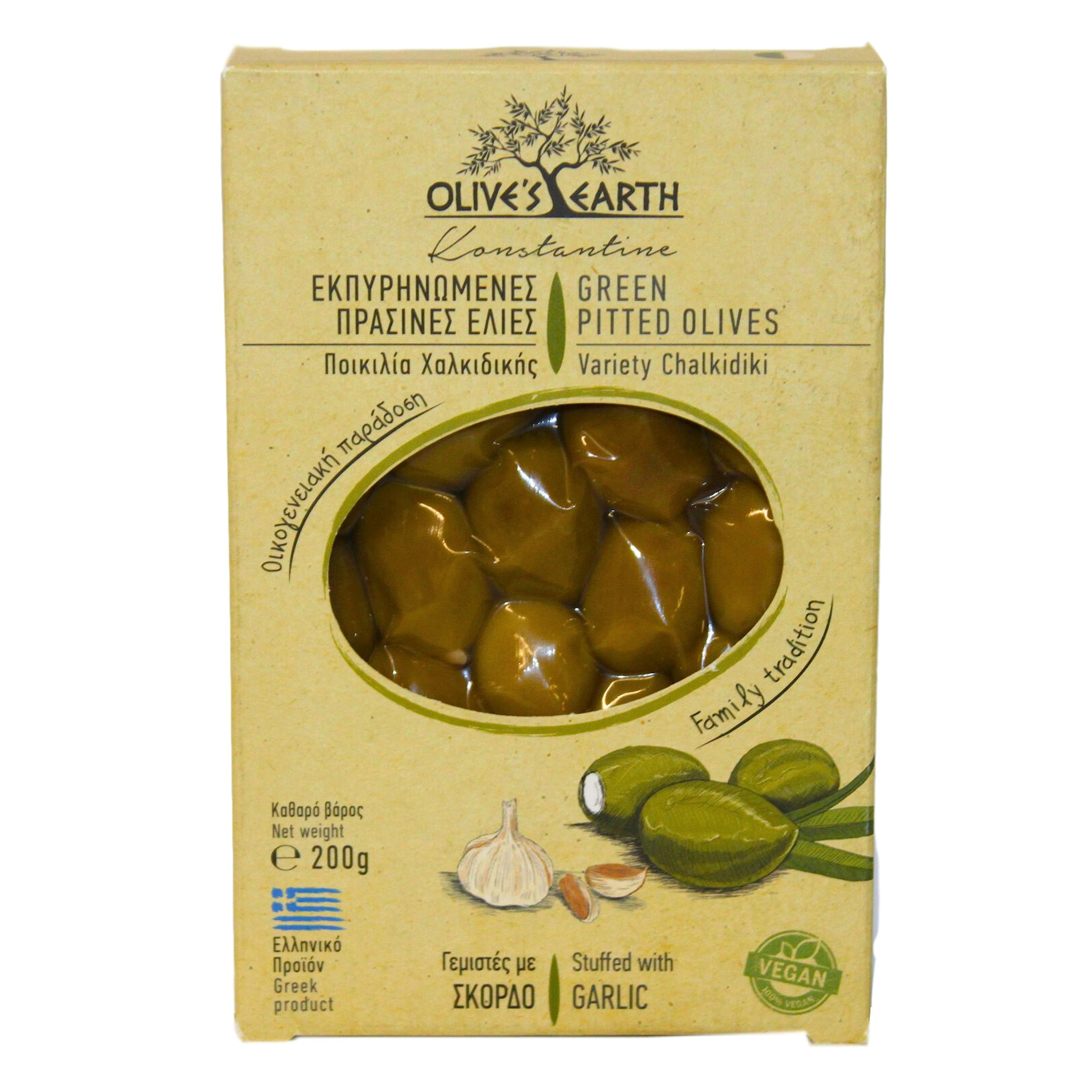 Olive’s Earth Aceitunas Verdes Sin Hueso Rellenas de Ajo | Variedad Calcídica | Pack 4 x 200 g (Total 800 g) | Veganas y Sin Conservantes