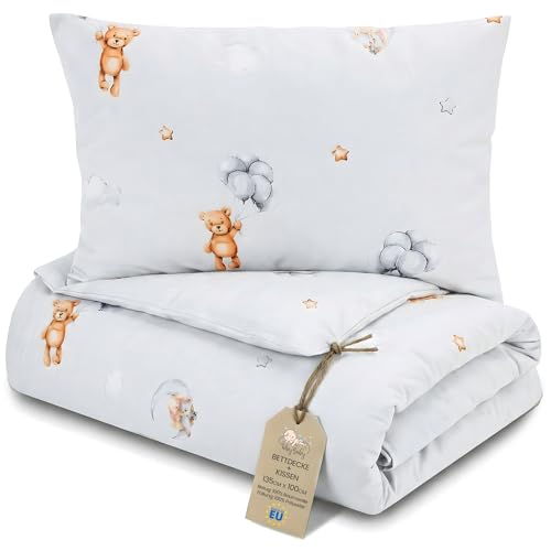 Totsy Baby Edredon Relleno nordico Cama Infantil Algodón – 100×135 – Bebe rellena Juego de Manta 100 x 135 cm con Almohada 40 x 60 cm por niños e niñas Oeko-Tex Osos de Peluche