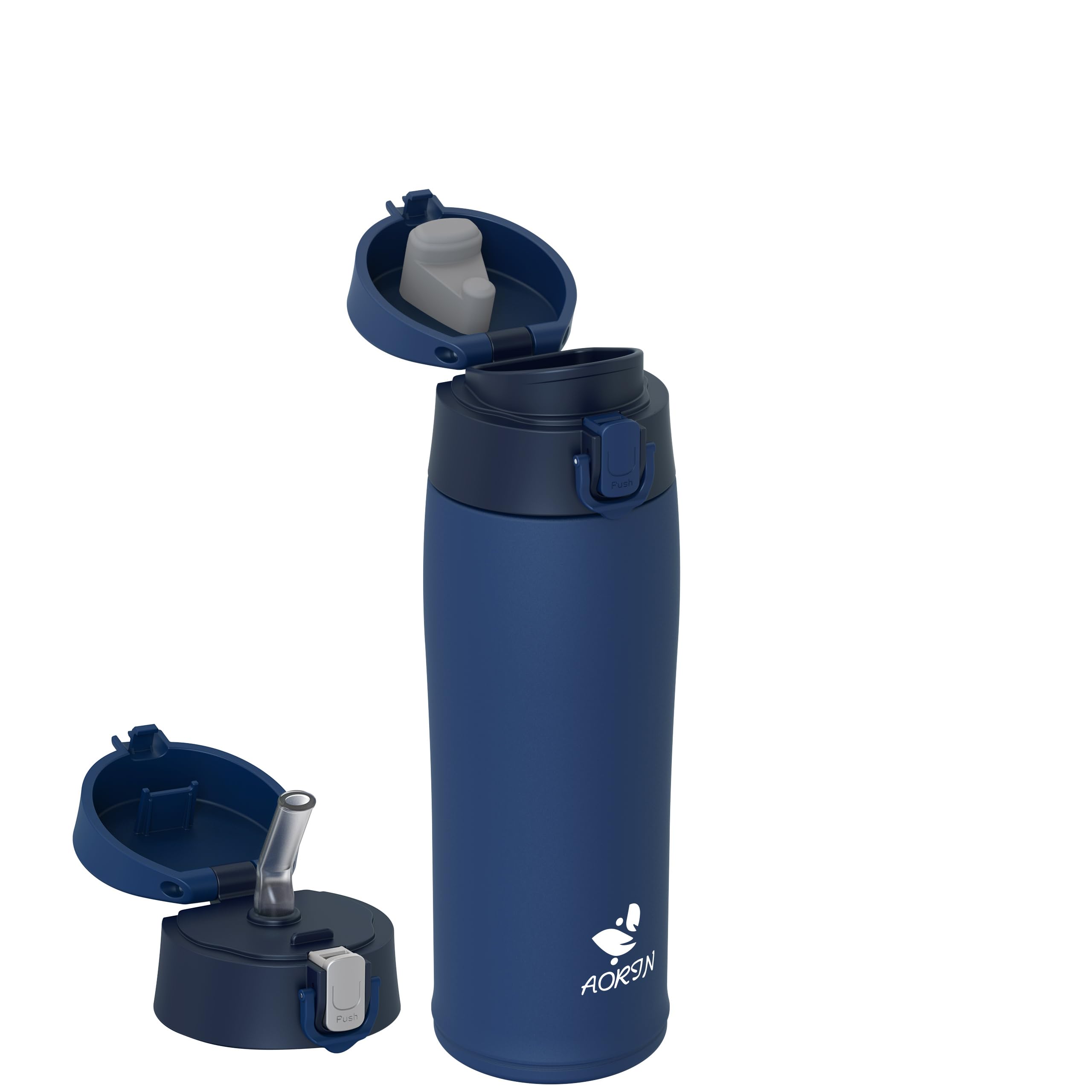 AORIN Botella Agua Acero Inoxidable 18/8 con 2 Tapas, 500ml Botella Agua Niños, Botella Térmica Anti-Fugas, Botella Gimnasio, Termo sin BPA para Deportes, Exterior, Viajes y Escuela