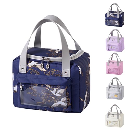 jiuzcare Térmica Porta Alimentos 6L Bolsa Isotermica con Correa Bolsa Térmica Plegable Bolso Nevera Térmica Tela Almuerzo Lunch Bag para Mujeres, Niños, Trabajo, Picnic Playa Cámping Viaje, Marino