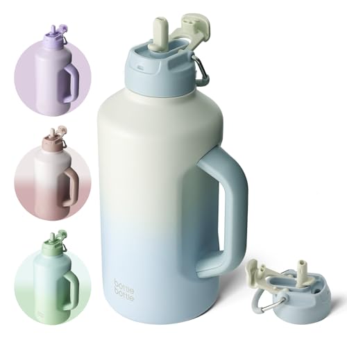 BOTTLE BOTTLE Botella de agua aislada de 64 onzas con popote y tapa de doble uso, botella de agua deportiva de acero inoxidable con asa, acero inoxidable al vacío para entrenamiento y deportes (gris
