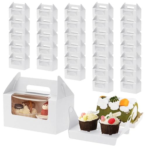 Aslanka Juego de 30 Cajas para Cupcakes con Bandejas, Juego de Cajas para Pasteles (30 Cajas + 30 Bandejas), Cajas para Pasteles Blancas con Ventana, Adecuadas para Envases de Magdalenas y Postres