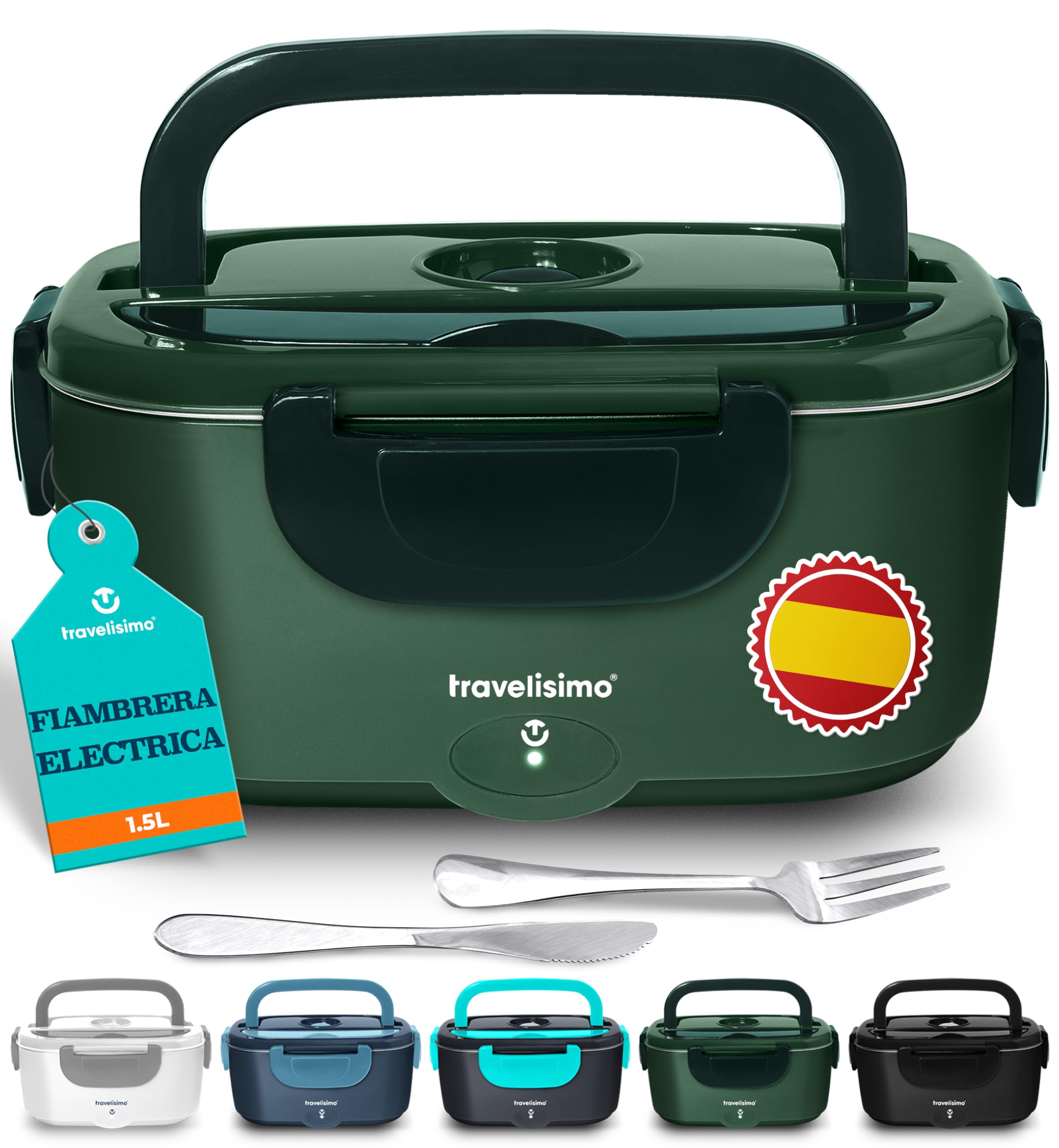 TRAVELISIMO Fiambrera Electrica 100W Taper Electrico para Comida 1,5L Fiambrera Termica 3 en 1 12V/24V/220V – Fiambreras Comida Trabajo Para Coche y Camión, Marmita Electrica en Acero Inoxidable