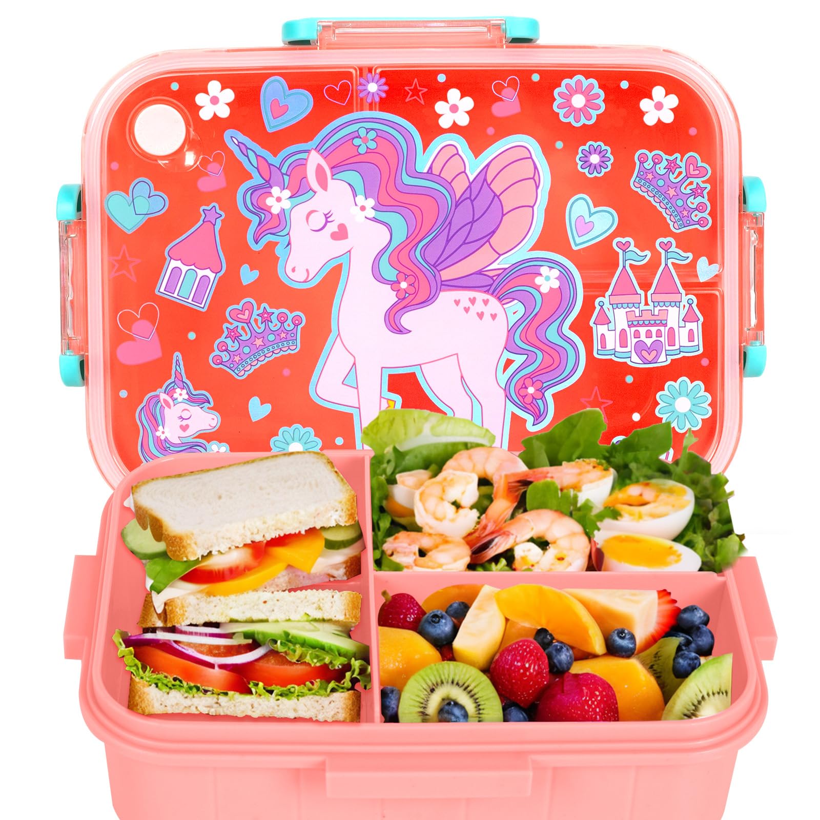 PinkSheep – Loncheras Bento para niños, 1200 ml, sin BPA, a prueba de fugas, contenedores de alimentos para niños con 3 compartimentos para niños y niñas (Unicornio)