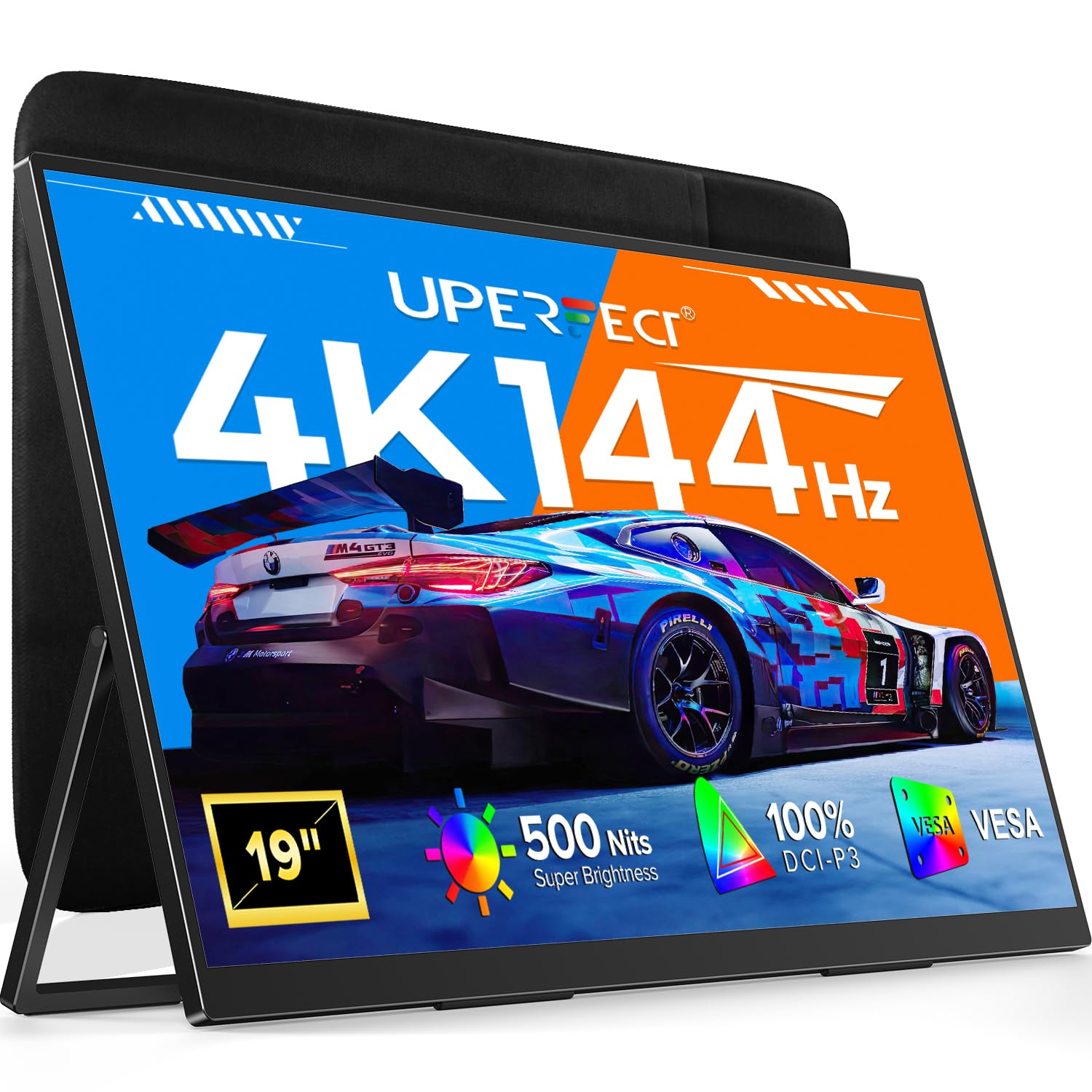 UPERFECT Portable Monitor 4K 144Hz QLED, 19″ UHD 3840×2160, 500 Nits, 2000:1, 100% DCI-P3, 0.1ms, Built-in Stand & VESA Mount, Travel Gaming Monitor for Laptop, PC & Gaming Consoles – UColor 19 Apex