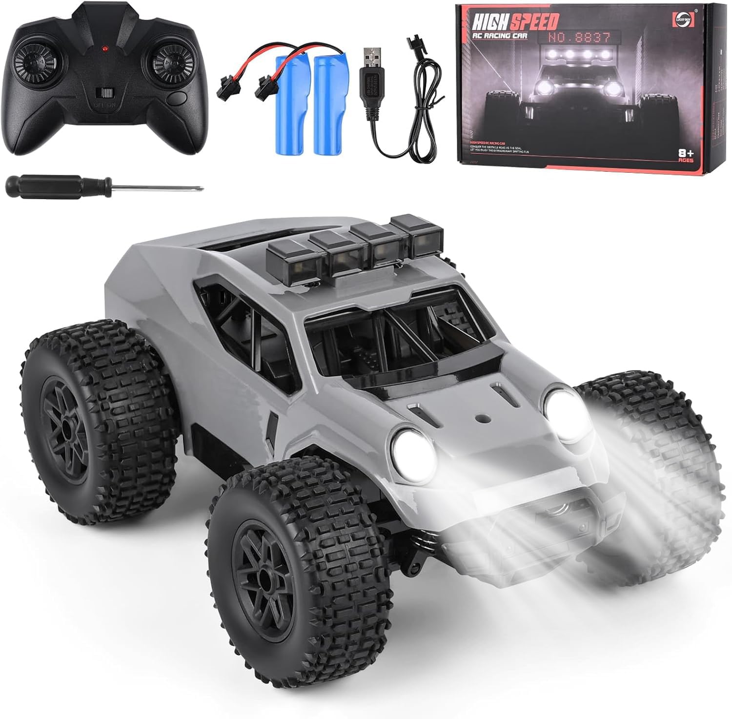 Comius Sharp Coche Teledirigido, Coche Teledirigido De Alta Velocidad 1/20 25km/H, Todo Terreno Todoterreno con Luces Led, Regalo para Niños De 7 A 14 Años(Gris)