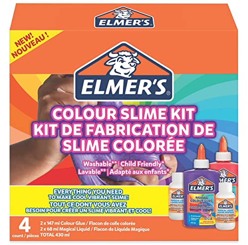 Elmer’s Kit de slime de colores | Incluye pegamento PVA de colores lavable | Colores surtidos y activador líquido mágico para slime | Lavable y apto para niños | 4 unidades