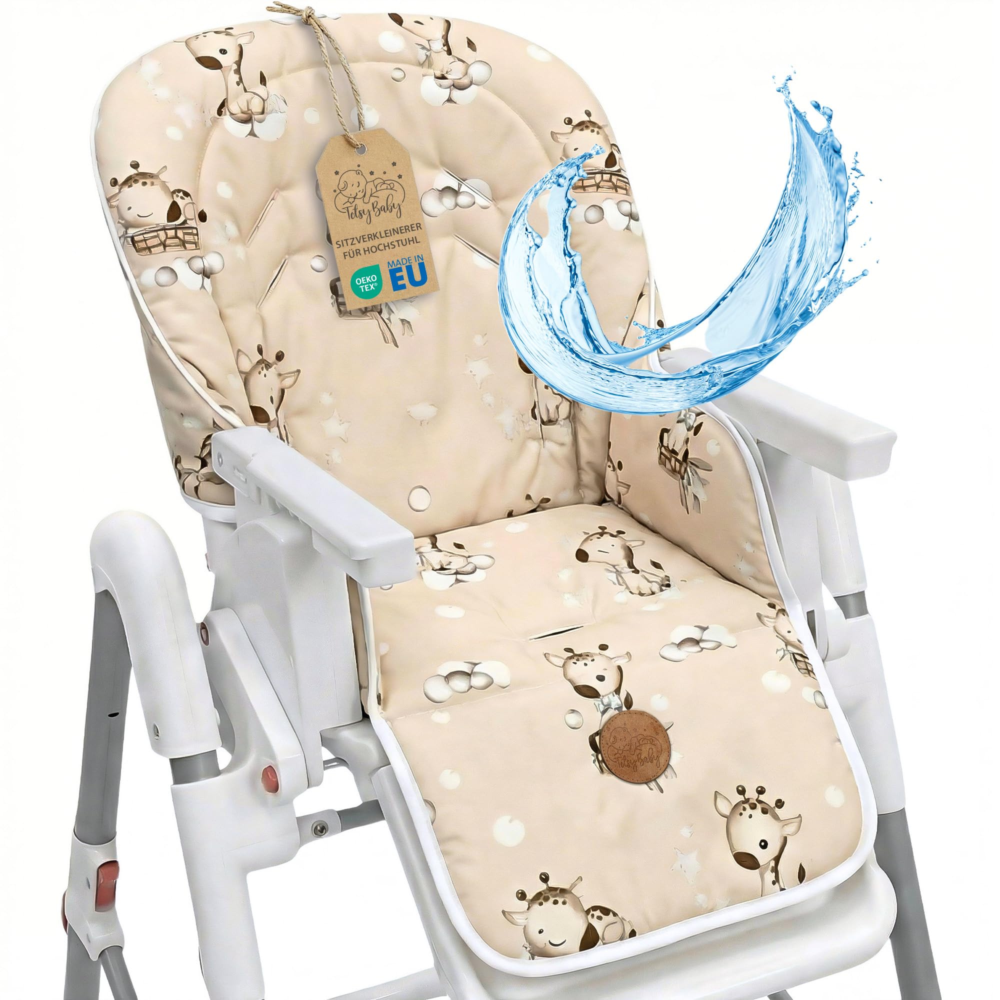 Funda trona universal – cojin para de tronas fundo silla para niños y niñas comer Cojín para silla infantil con revestimiento impermeable y estable certificado Oeko-Tex Jirafas