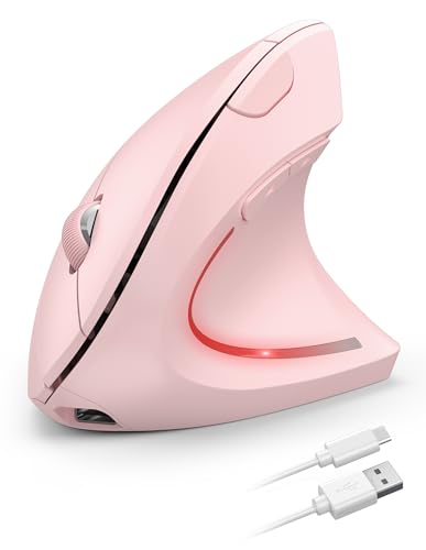 TECKNET Ratón Ergonómico Recargable, 4800DPI 2.4GHz Ratón Vertical Silencioso, Ratón Inalámbrico 6 Botones con Receptor USB para PC, Ordenador, Portátil, Mac, Rosa