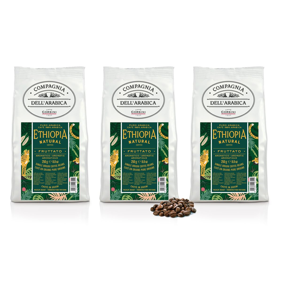 Caffè Corsini – Café en Grano 3x250g Compagnia Dell’Arabica Etiopía Natural, Afutado y aromatico, Mono Origen, Afrutado, 750g en Total.