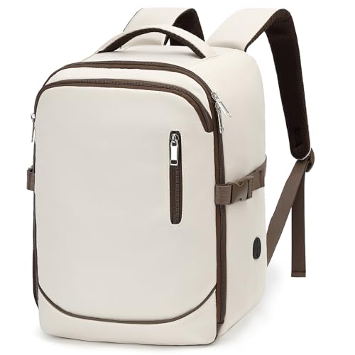 Yankony Mochila Viaje Cabina Avion 40x30x20 para Ryanair 24L Travel Backpack con Bolsillo Antirrobo Cabin Bag Equipaje De Mano Hombre Mujer, Beige
