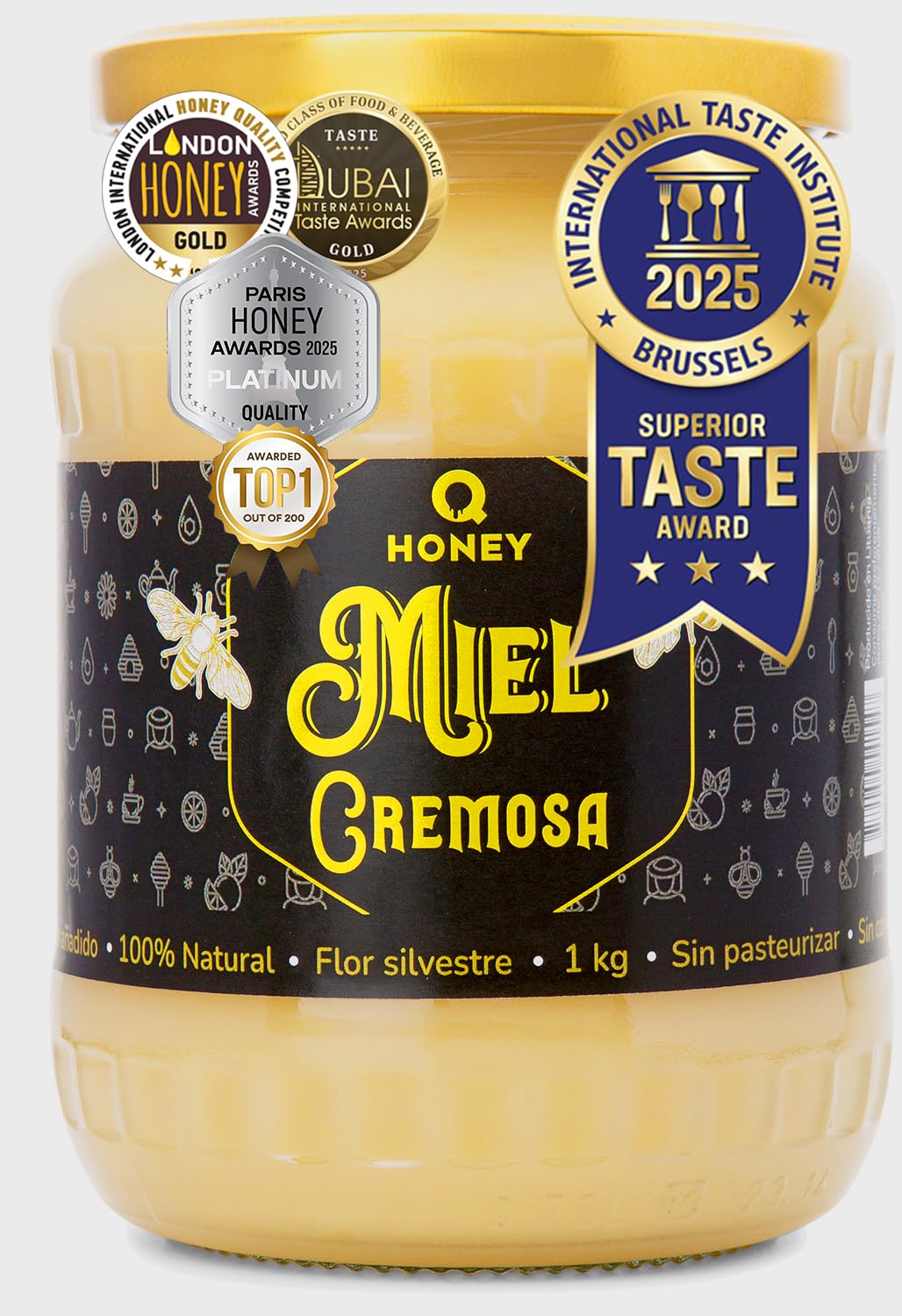 Ganadora del Superior Taste Award 2025 – Miel Cremosa Cruda Untable 1kg, Suave y sin Cristalización, Natural, No Filtrada ni Pasteurizada