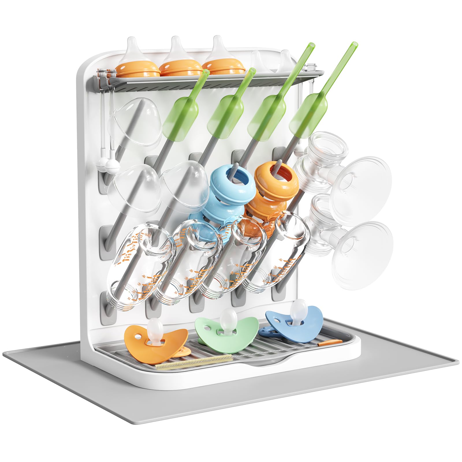 Lifewit Escurridor Grande para Biberones con Alfombrilla de Drenaje, Escurridor Vertical con 15 Ganchos y Caja ExtraíBle para Tetinas, Apto para Pajitas a PresióN y Accesorios para Sacaleches